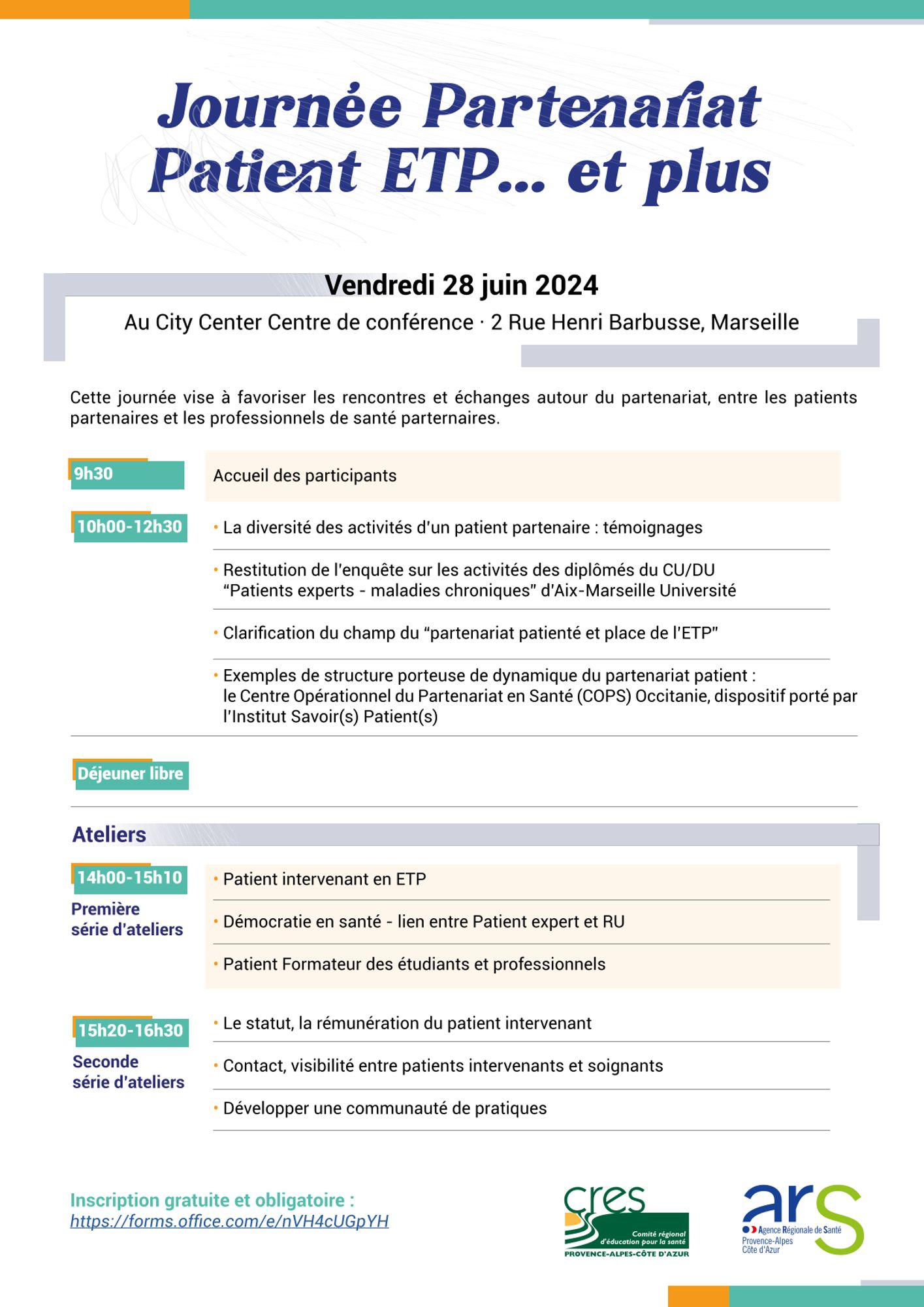 Le CRES, en partenariat avec l'ARS PACA, a organisé le 28 juin 2024 à Marseille la journée "Partenariat Patient ETP et plus..."