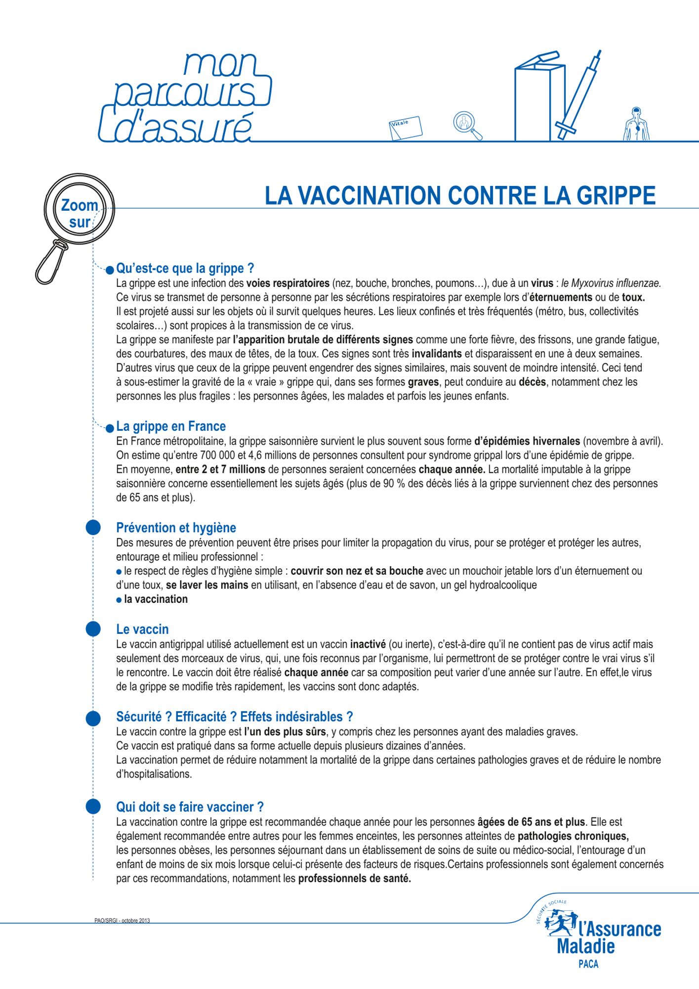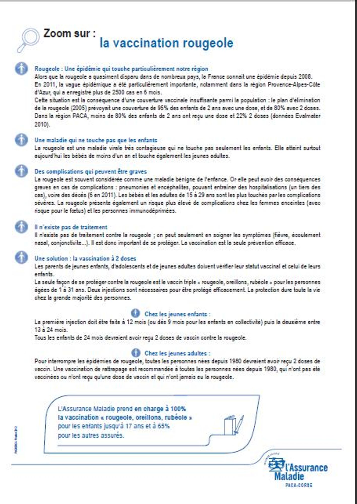 - Une lettre d'information grand public sur la vaccination, déclinée de la fiche pour les professionnels de santé, a été un temps envoyée par l'Assurance maladie aux assurés sociaux de la région, avec les relevés de prestations.
