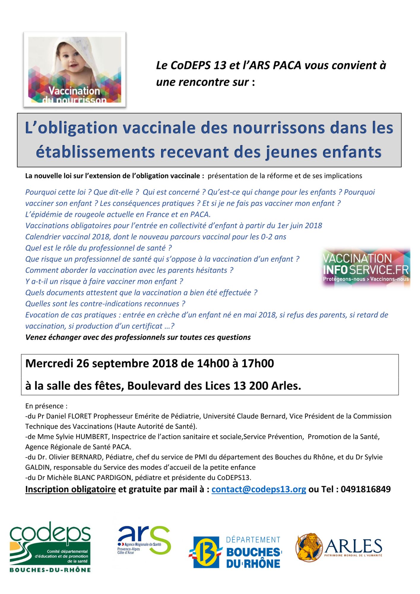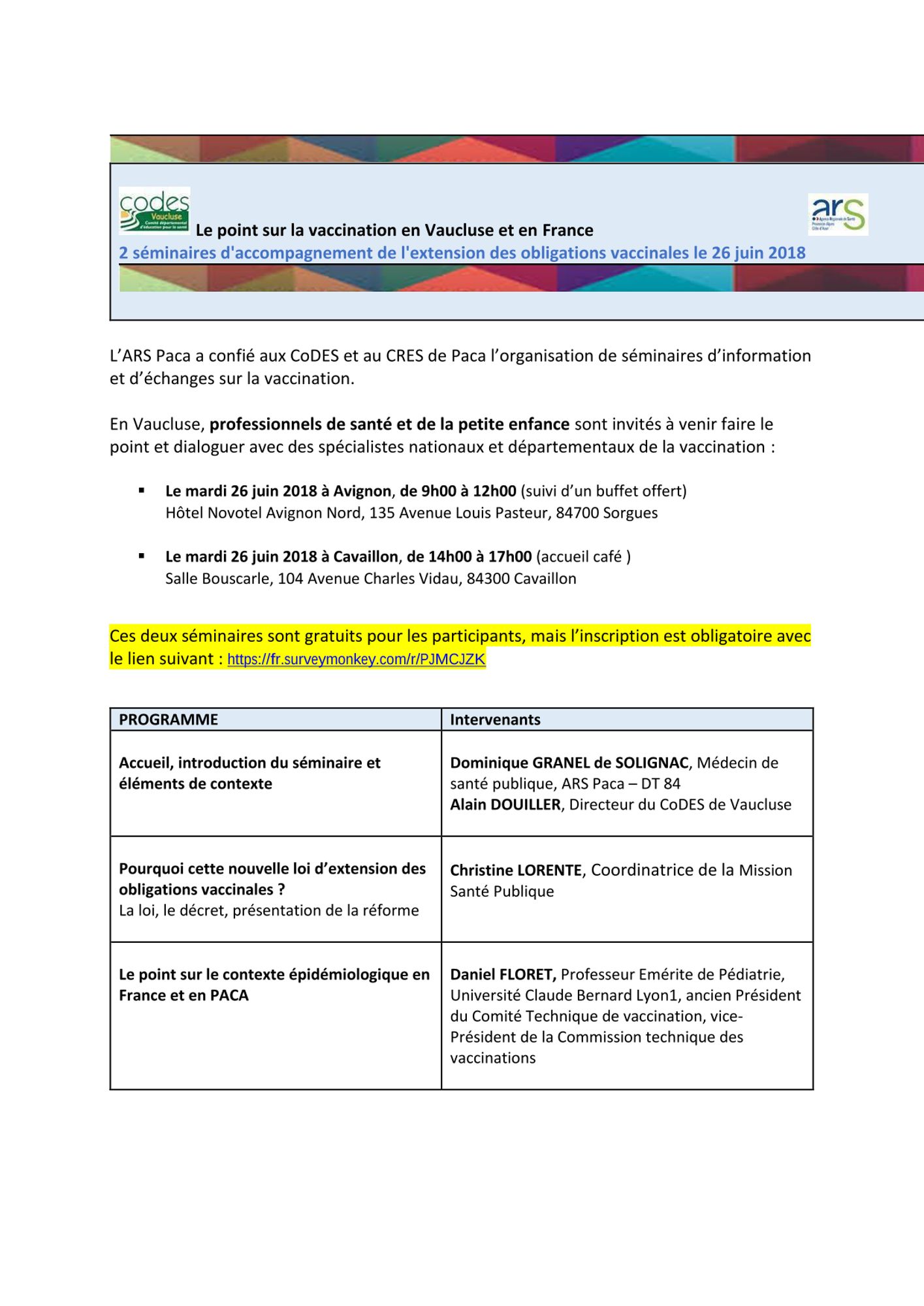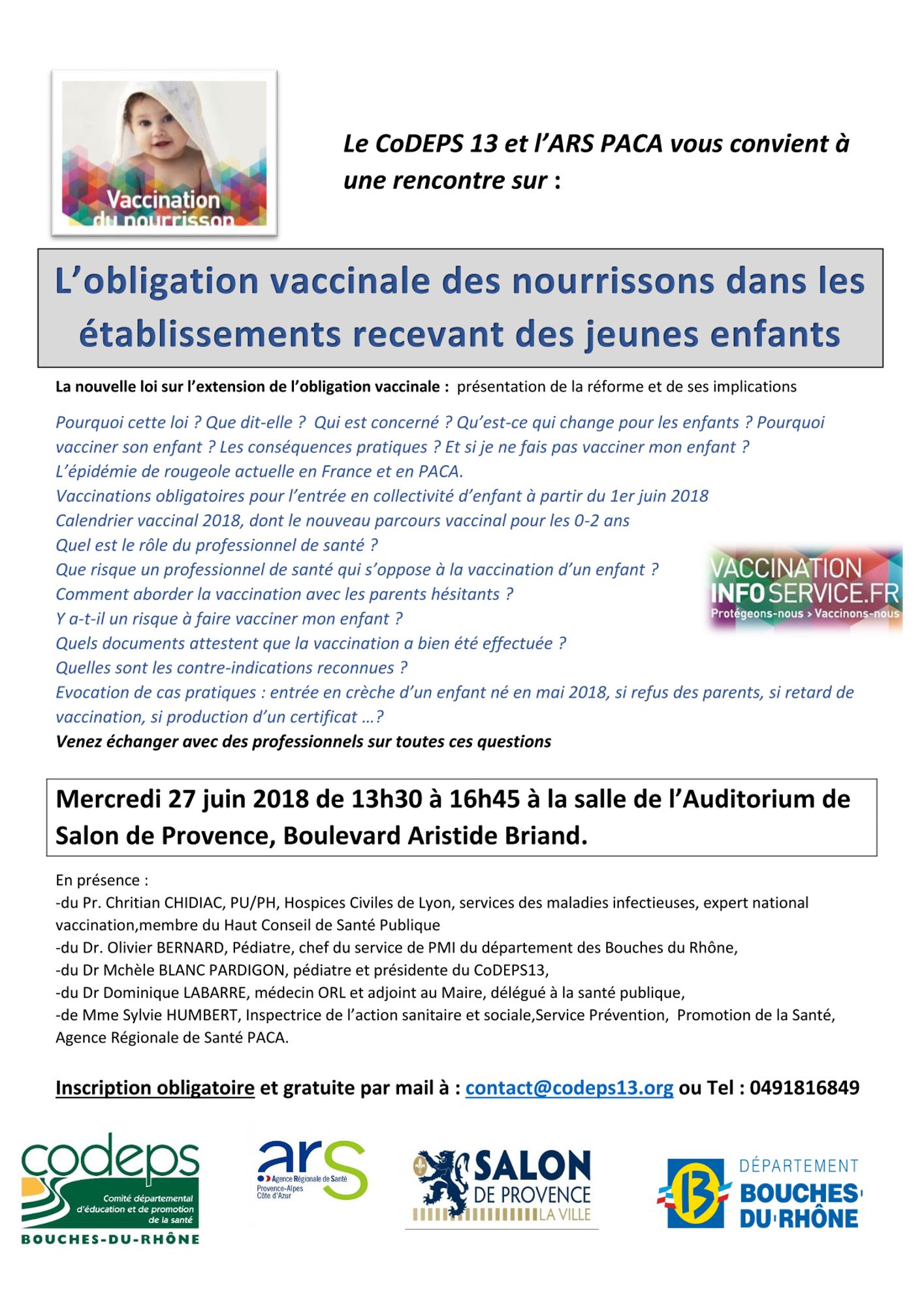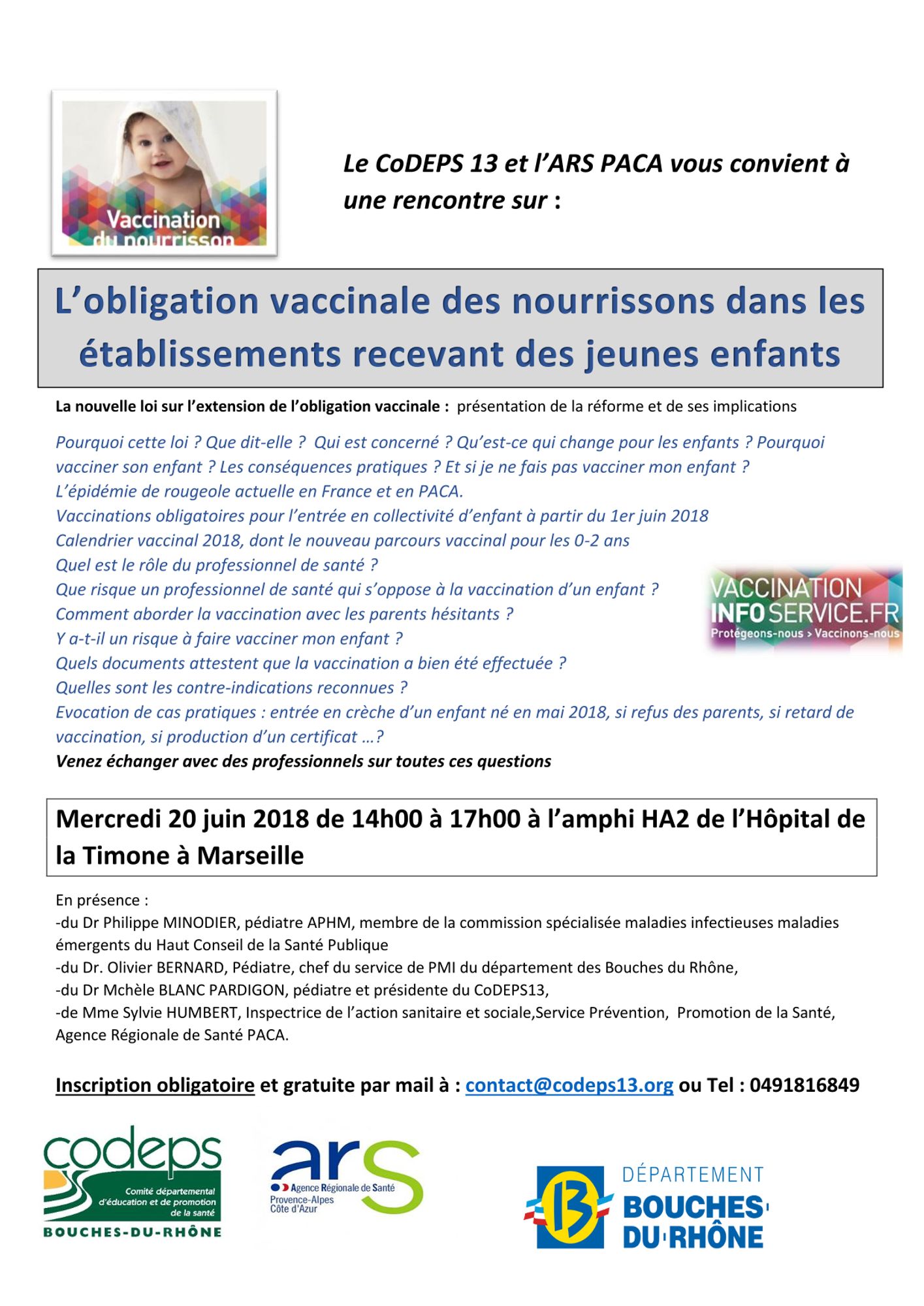 Les délégations départementales de l'ARS PACA et les CoDES de la région organisent des séminaires d'information et d'échanges pour les professionnels de santé et de la petite enfance afin d'accompagner la loi sur l'extension des obligations vaccinales.