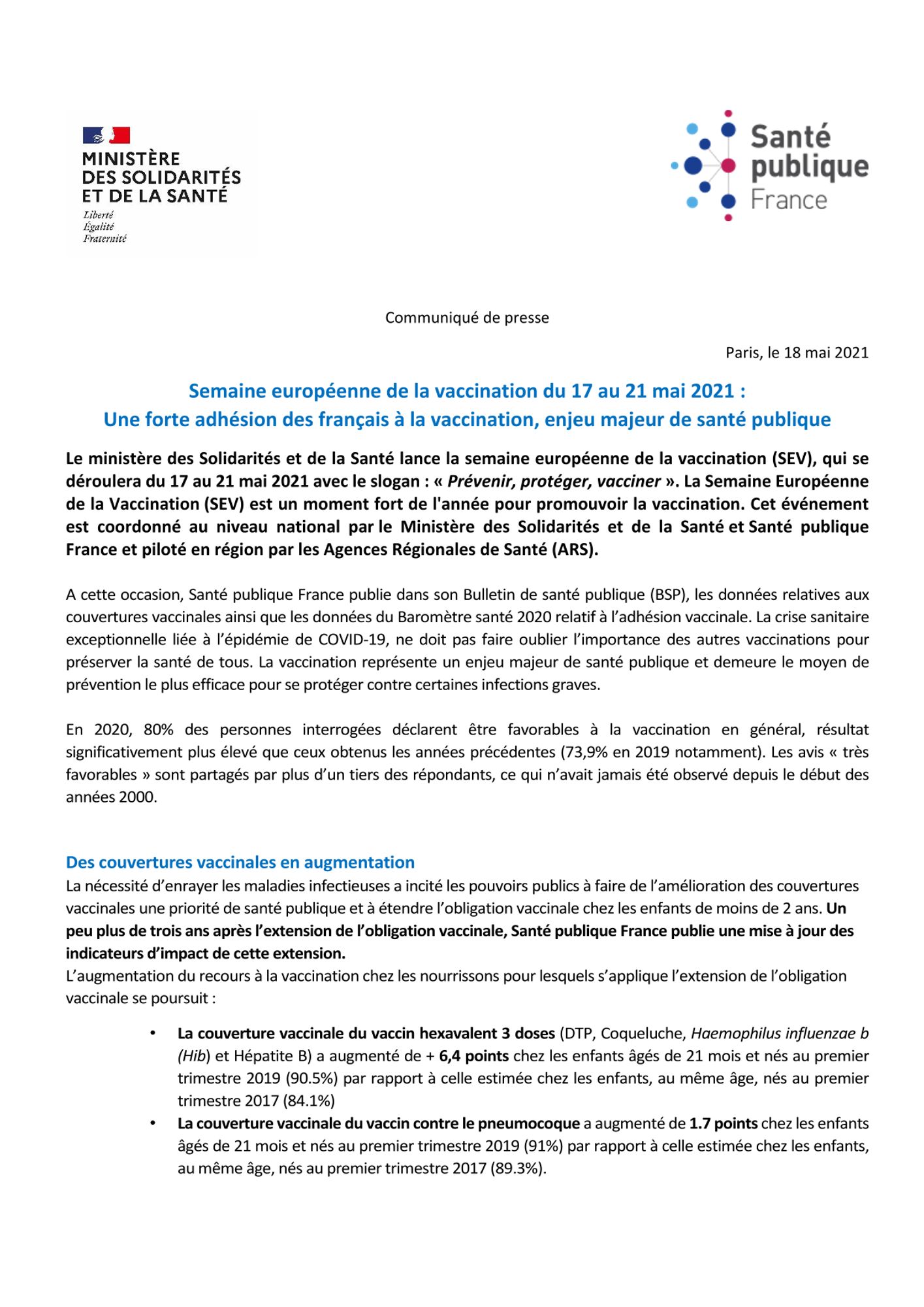Cette année, Santé publique France et le Ministère chargé de la santé ont fait le choix d'organiser la SEV du 17 au 21 mai 2021 .