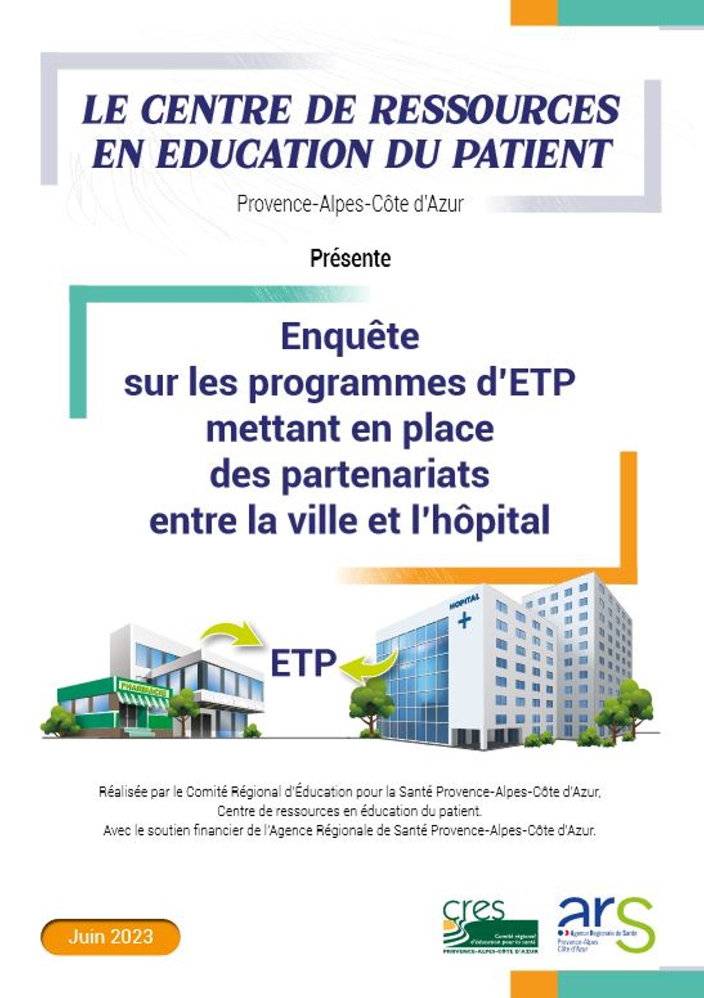 Le CRES a coordonné au premier semestre 2023 une publication réalisée par le Dr Carole Deccache, Laboratoire Educations et Prévention Santé (UR3412) "Enquête sur les programmes d'ETP mettant en place des partenariats entre la ville et l'hôpital".