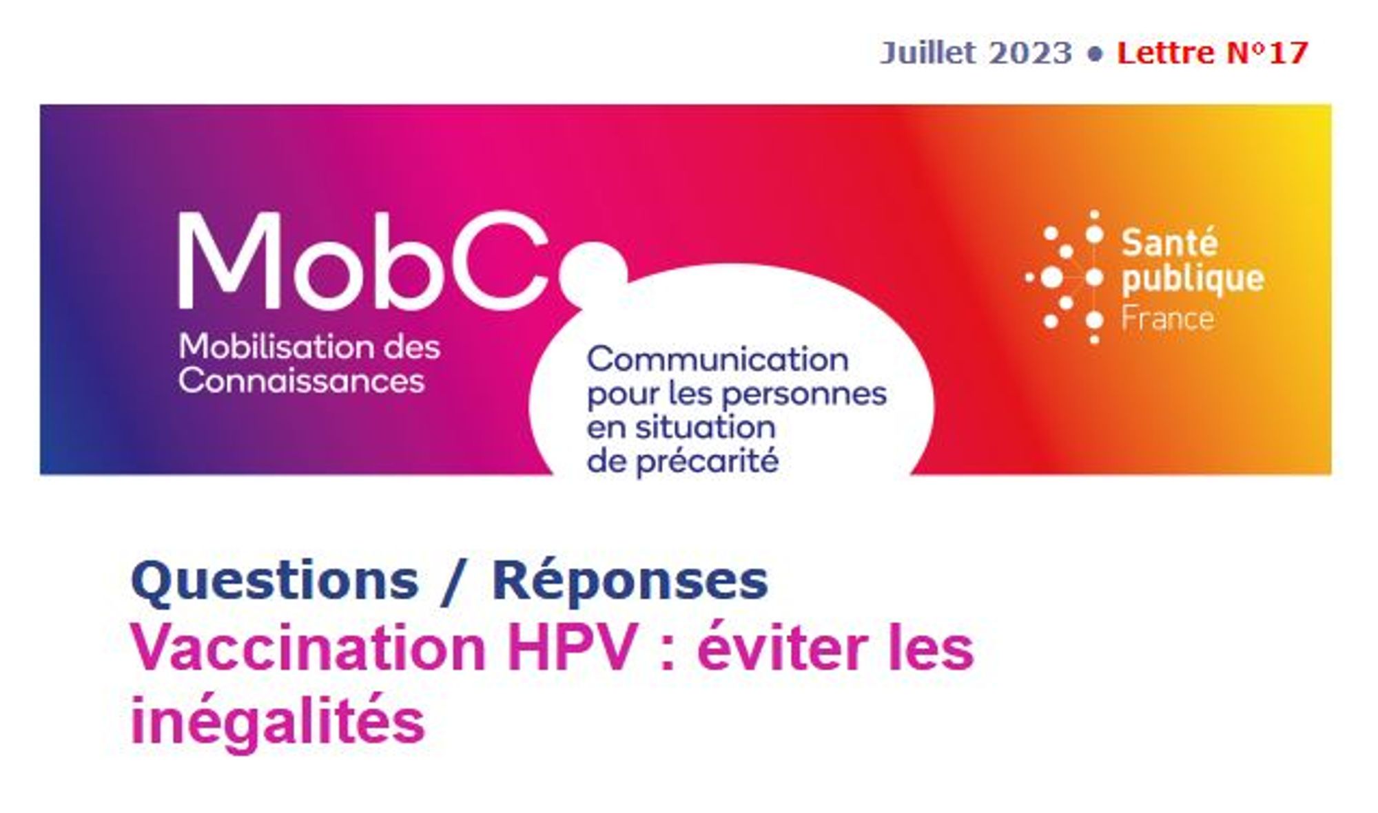 Cette nouvelle lettre électronique pour communiquer avec les personnes en situation de précarité aborde la vaccination HPV et la réduction des inégalités sociales.