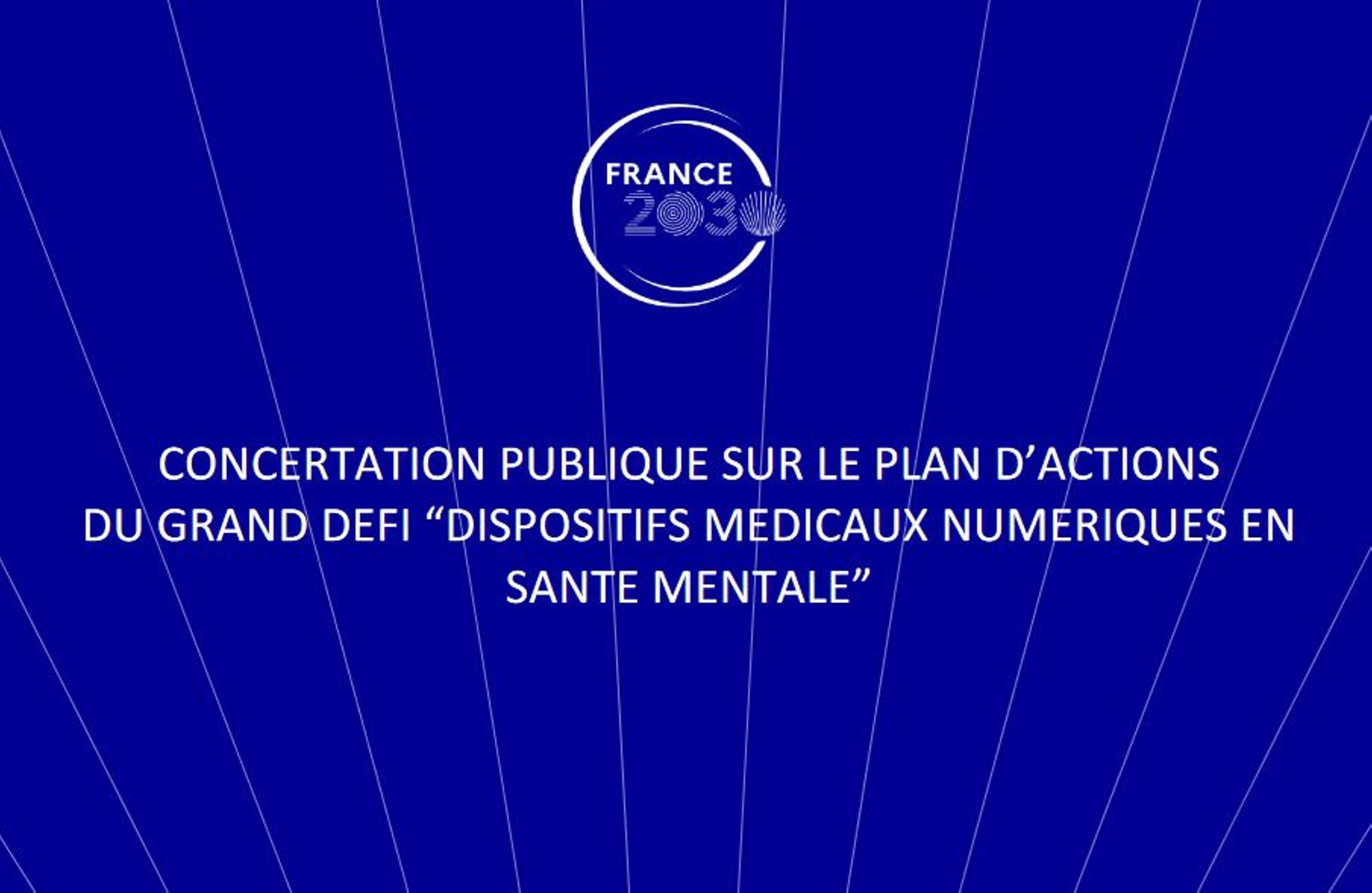Dans le cadre du Plan Dispositifs Médicaux Innovants France 2030, le Grand Défi « Dispositifs médicaux numériques en santé mentale » vise à faire émerger des technologies de santé numériques innovantes en santé mentale et en psychiatrie. L’objectif est également d’assurer l’accès au marché aux dispositifs médicaux numériques permettant la prévention, la prise en charge et le suivi des patients en psychiatrie et des personnes concernées dans le champ de la santé mentale.