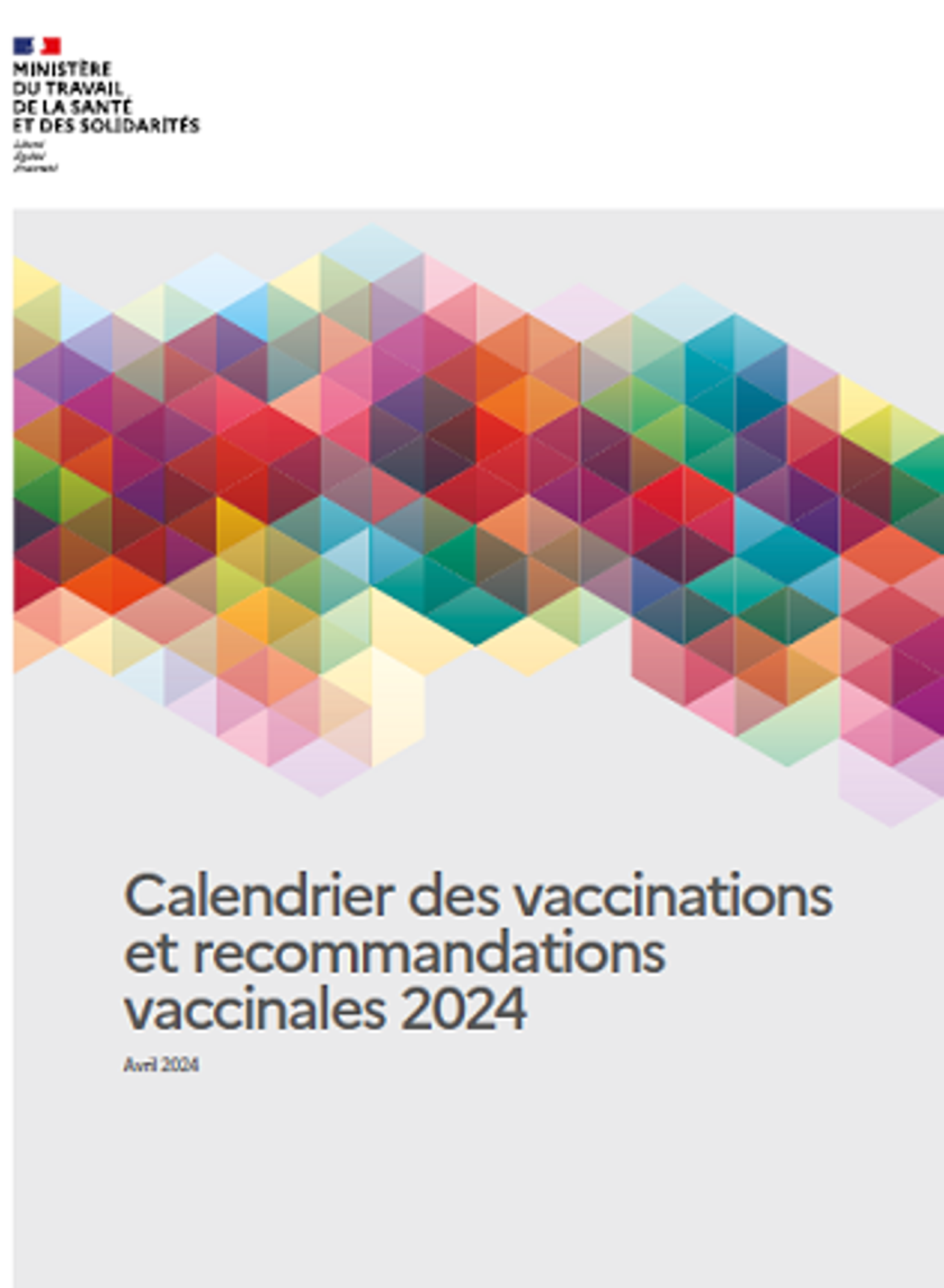 Le calendrier vaccinal 2024 a été publié sur le site du Ministère de la Santé le 26 avril 2024. Les nouveautés concernent les infections à pneumocoque, les infections invasives à méningocoque, le zona et la rougeole.