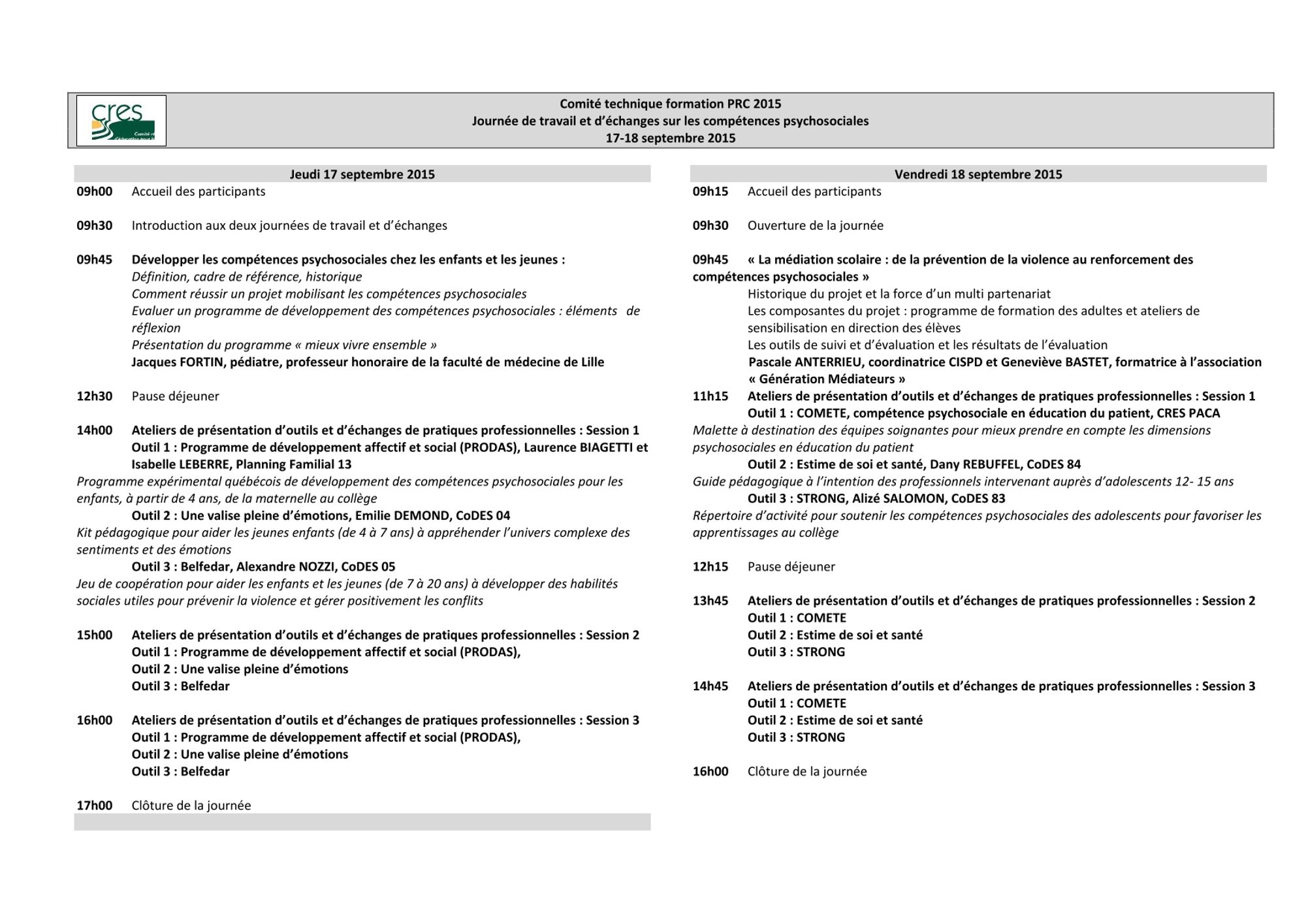2 journées de travail sur les compétences psychosociales