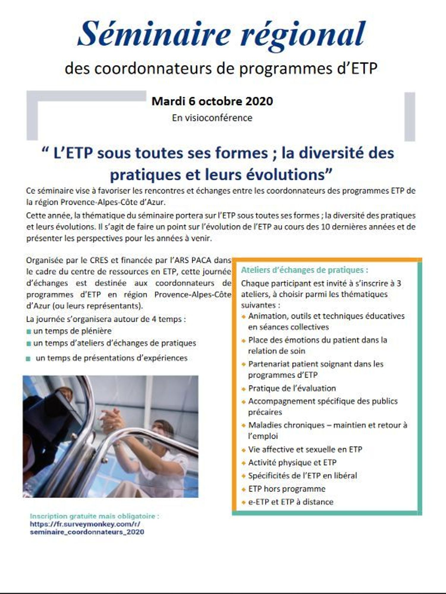 Séminaire des coordonnateurs n° 3 : l'ETP sous toutes ses formes, le 6 octobre 2020 en visioconférence
