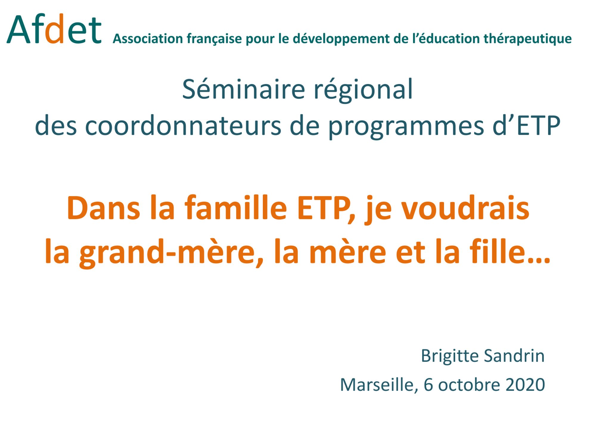Le séminaire portera sur le thème : « L’ETP sous toutes ses formes, la diversité des pratiques et leurs évolutions » et aura pour objectif de favoriser les échanges entre les coordonnateurs des programmes ETP de la région Provence-Alpes-Côte d’Azur.