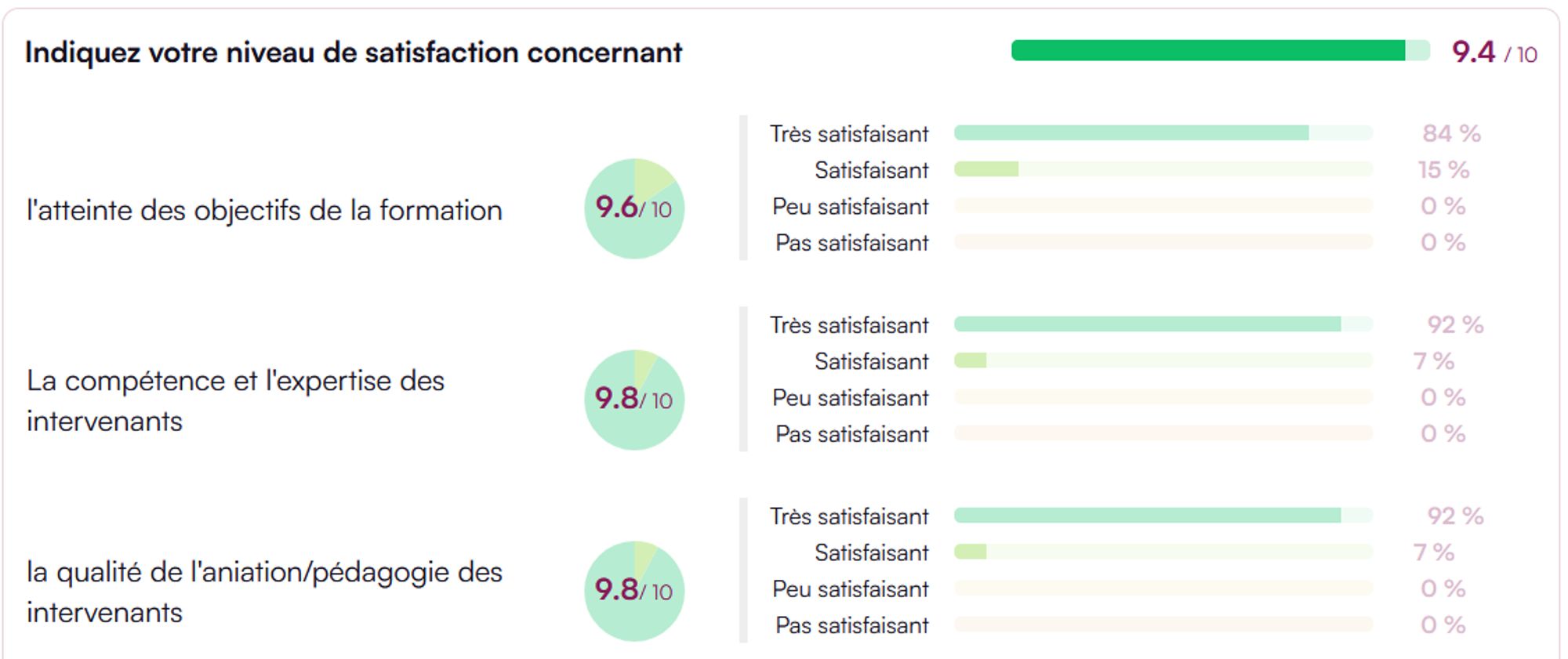 - 0 % Pourcentage de satisfaction concernant la formation en général