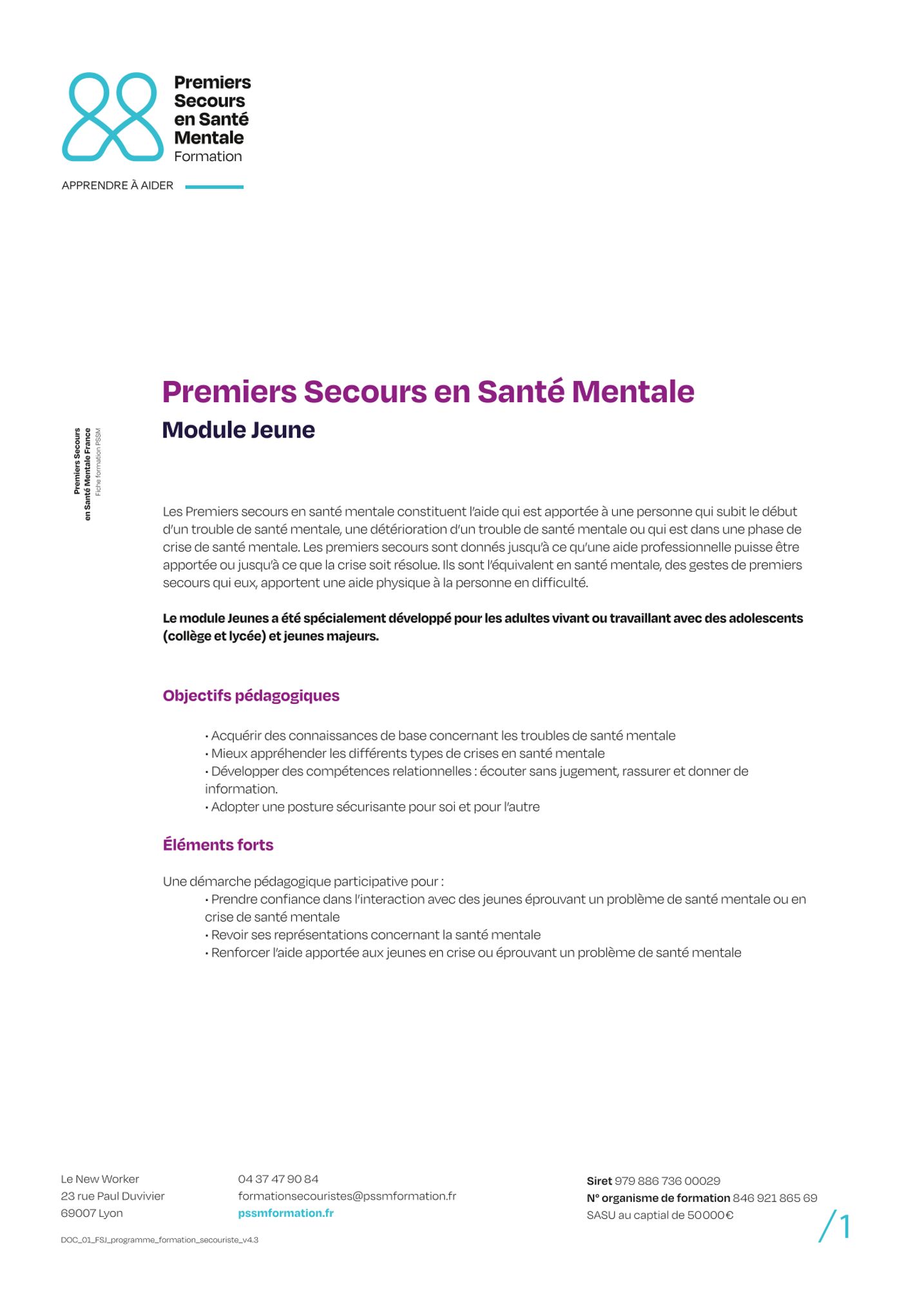 Premiers secours en santé mentale - PSSM jeunes (nouveau !)