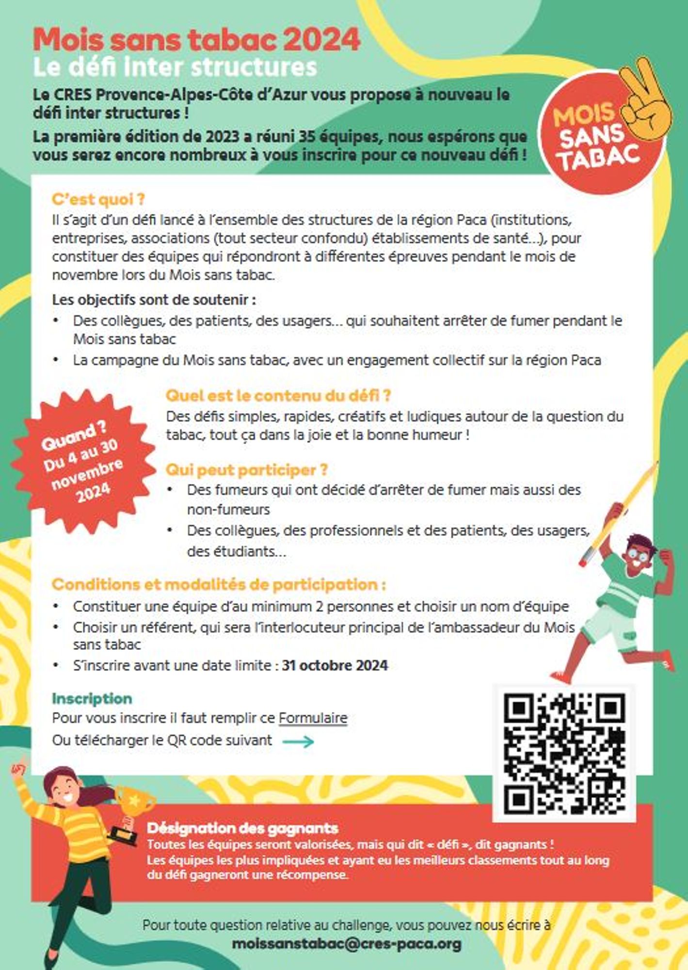 Pour la deuxième année consécutive, le CRES propose à ses partenaires de la campagne Mois sans tabac de participer à son défi inter structures.