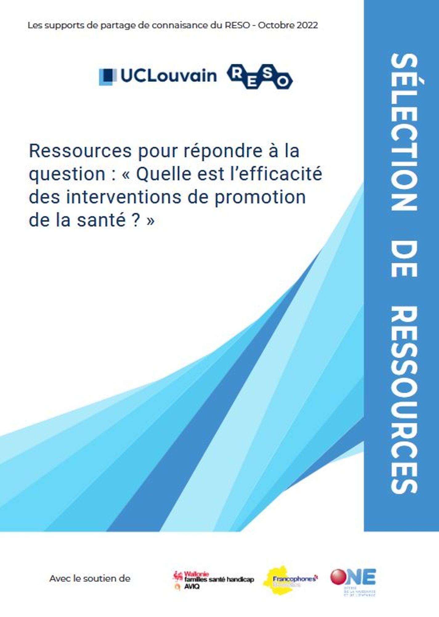 A la demande du Conseil consultatif bruxellois francophone de l'Aide aux Personnes et de la Santé, section promotion de la santé, le RESO a réalisé une sélection de ressources pour répondre à la question de l'efficacité de la promotion de la santé. Ce dossier privilégie des ressources francophones et en libre accès, et propose des références scientifiques portant sur l'évaluation de l'efficacité de programmes de promotion de la santé.