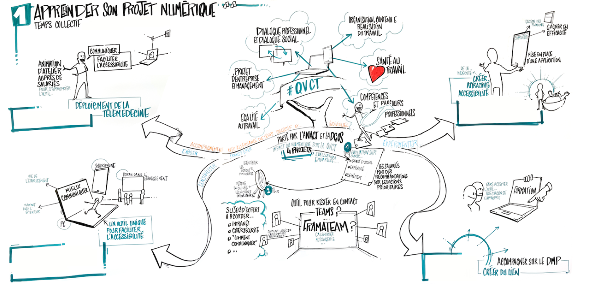 Suite à la mise en place de la stratégie de la qualité de vie et des conditions de vie au travail (QVCT), la DGOS a sollicité l'Anact pour mettre en place et animer un dispositif d'accompagnement des établissements de santé et structures du médico-social sur le sujet des transformations numériques. Après avoir répondu en 2021 à un premier appel à projets, l’Aract Paca s’est positionné fin 2022 sur un deuxième appel à projets dans la continuité du premier, pour démarrer une phase d’expérimentation. Il s’agit d’accompagner 4 établissements de santé ou médico sociaux dans le déploiement de logiciel de coordination et gestion des soins, télémédecine ou d’un système d’information afin que les professionnels comme les usagers s’approprient au mieux le nouveau dispositif.