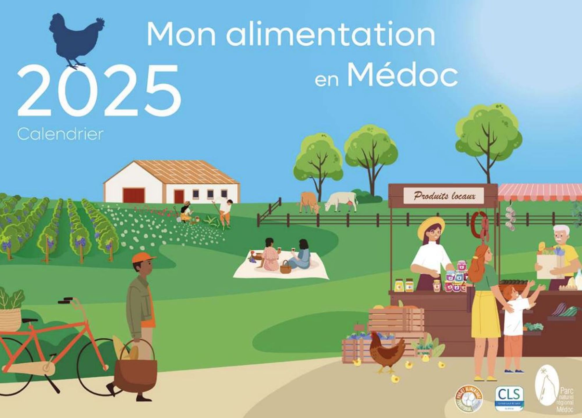 C'est le nouveau calendrier 2025 édité par le Parc naturel régional Médoc (Pnr). Comme pour les précédentes éditions, ce calendrier allie découverte du territoire, informations et partage de bonnes pratiques autour de l’alimentation. Le Pnr Médoc a été accompagné par Promotion Santé Nouvelle-Aquitaine dans la démarche d’écriture et pour la conception graphique. Le calendrier a été réalisé par le Parc avec des habitants et des professionnels et s’inscrit dans le Contrat Local de Santé (CLS), le Projet Alimentaire Territorial (PAT) et la Charte de Parc. Il est disponible au téléchargement et gratuitement dans les mairies du Médoc.