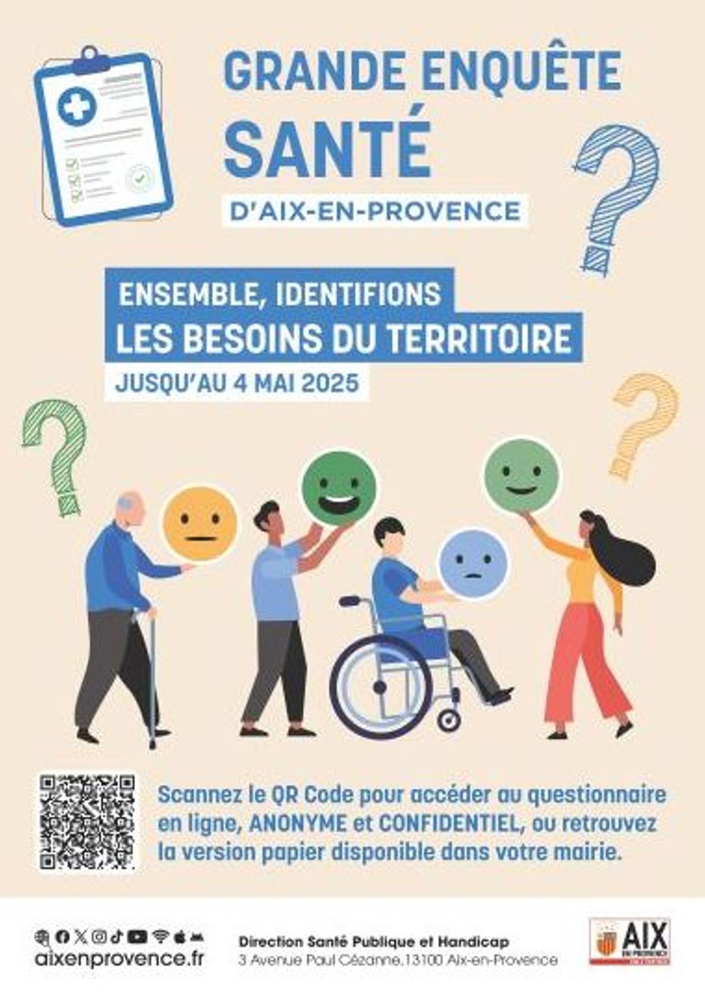 La Direction de la Santé publique et du handicap de la ville d'Aix-en-Provence invite tous les citoyens à participer à une grande enquête sur la santé à Aix-en-Provence.