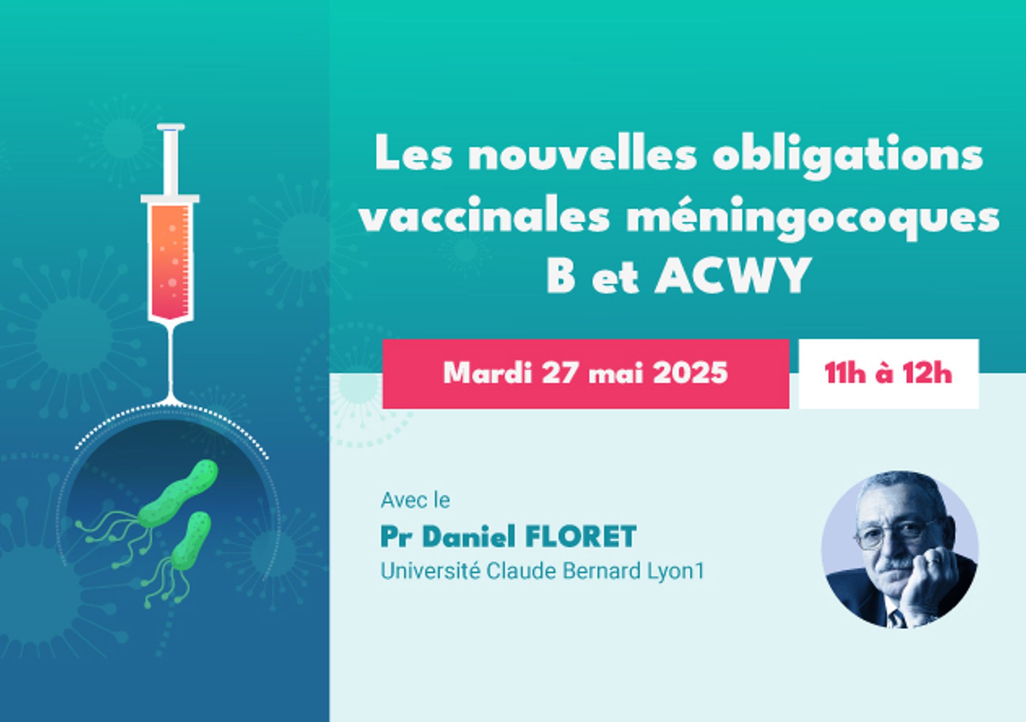Le prochain webinaire proposé par le CRES et l'ARS PACA est prévu le mardi 27 mai prochain à 11h sur le thème des nouvelles obligations vaccinales méningocoques B et ACWY, avec le Pr Daniel Floret, Université Claude Bernard Lyon 1.
