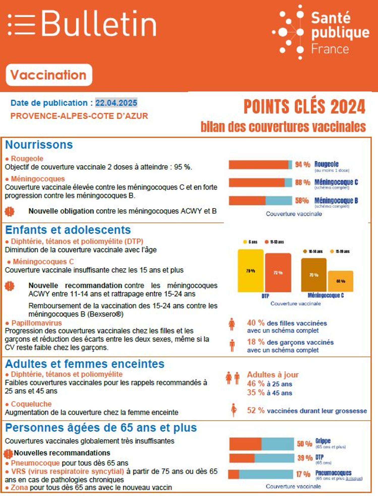 Découvrez pour la région PACA les points clés de la vaccination des nourrissons, des enfants et des jeunes, des adultes et des femmes enceintes, des personnes âgées.