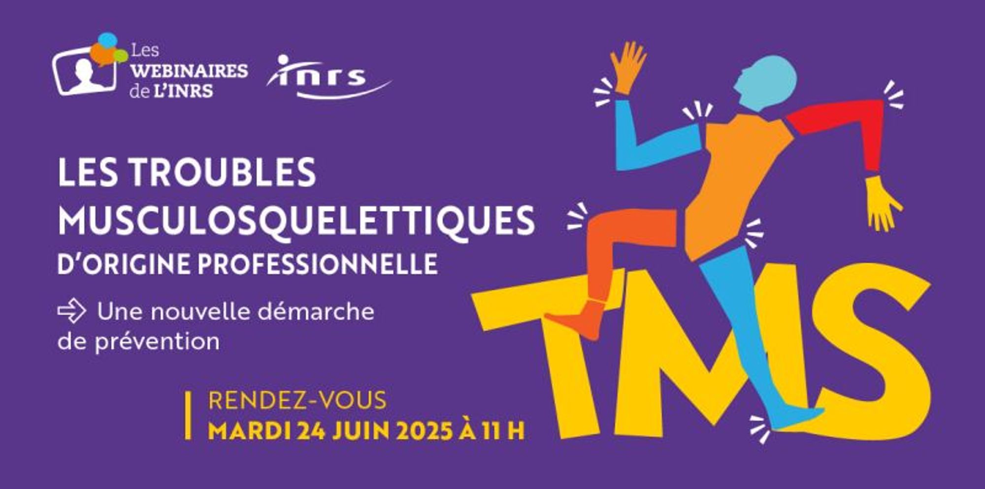 Les troubles musculosquelettiques (TMS) sont de loin les maladies professionnelles reconnues les plus fréquentes, tous secteurs d’activité confondus. C'est pourquoi l'INRS organise ce webinaire destiné aux employeurs, aux chargés de prévention en entreprise, aux IPRP, aux services de prévention et de santé au travail ainsi qu’aux services prévention des CARSAT/CRAMIF/CGSS.