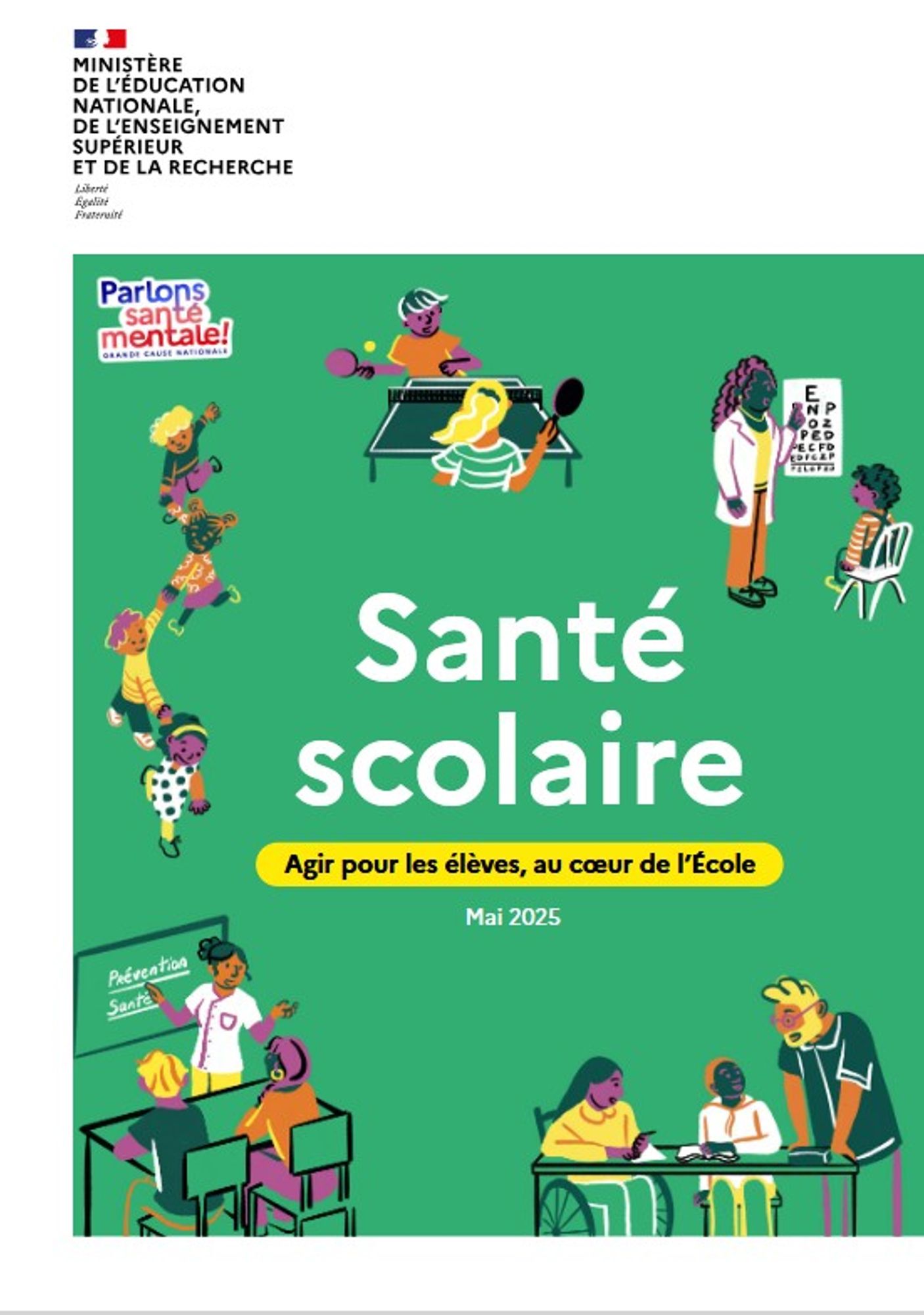 Cette publication présente les premiers engagements du Ministère de l'Education nationale au service de la santé, du bien-être des élèves et de la protection de l’enfance, présentés lors des Assises de la santé scolaire. Les 4 axes prioritaires pour une santé scolaire à la hauteur des nouveaux besoins des élèves sont : réaffirmer les missions fondamentales de prévention, détection, promotion de la santé ; agir dès le plus jeune âge pour mieux détecter et prévenir ; renforcer les partenariats avec les acteurs de la santé pour garantir une prise en charge plus efficace ; mettre la santé mentale des jeunes au coeur de notre action. Les 12 mesures présentées seront mises en oeuvre à partir de la rentrée scolaire 2025 et durant l'année scolaire 2025-2026.