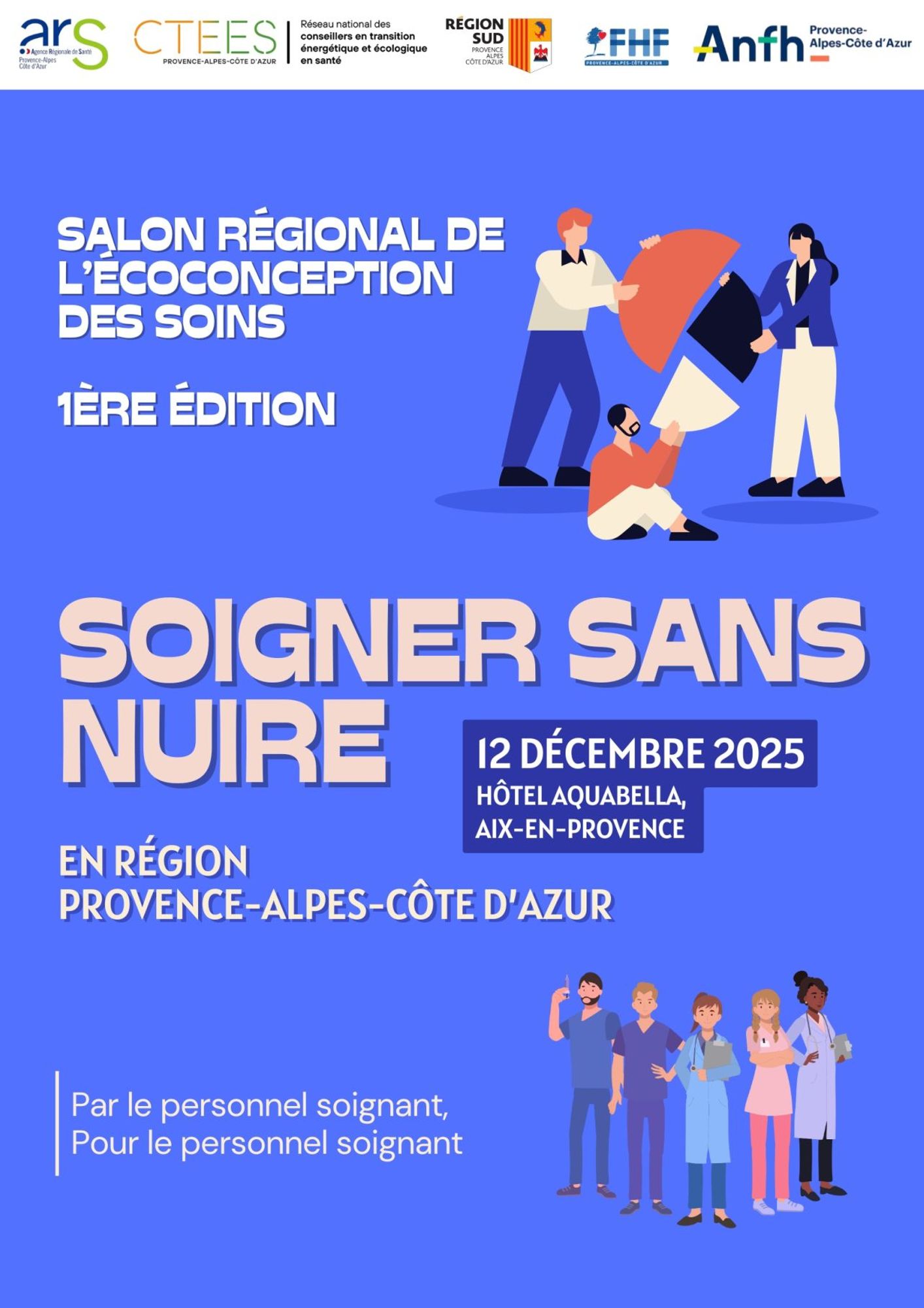 Venez partager vos retours d'expérience au 1er salon régional dédié à l'écoconception des soins organisé par le Réseau transition énergétique et écologique en santé - Provence-Alpes-Côte d'Azur et Corse (CTEES) avec le soutien de l'ANFH Paca, de l'ARS Paca, de la Région Sud - Provence-Alpes-Côte d'Azur et de la FHF Provence-Alpes-Côte-d'Azur.