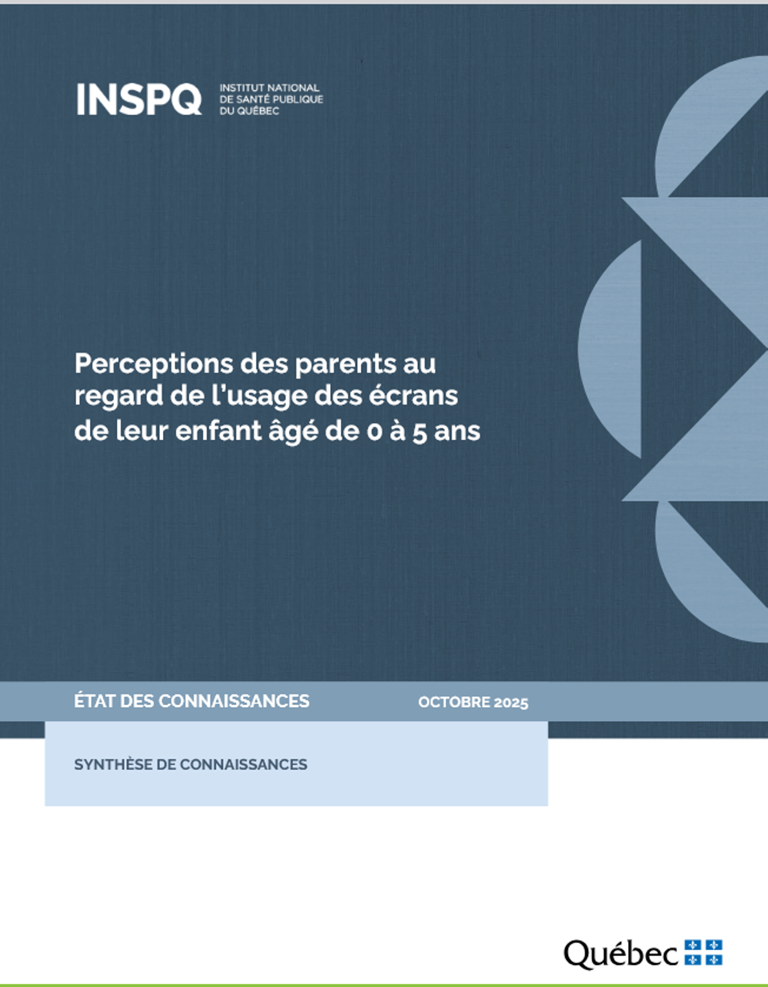 Pendant la petite enfance, les parents jouent un rôle majeur concernant l’usage des écrans de leur enfant. Leurs perceptions à l’égard de cet usage font partie des multiples facteurs qui influencent la durée d’utilisation des écrans du tout petit. Cette synthèse de connaissances documente ces perceptions dans la littérature internationale. Les pistes d’action pour un usage équilibré des écrans pendant la petite enfance gagneraient à tenir compte de ces perceptions, qui soutiennent l’importance de ne pas faire porter la responsabilité uniquement aux parents. Dans une perspective de santé publique, il apparaît important de dépasser l’éducation et la formation des parents, et de rendre les environnements des familles favorables à un usage équilibré des écrans.