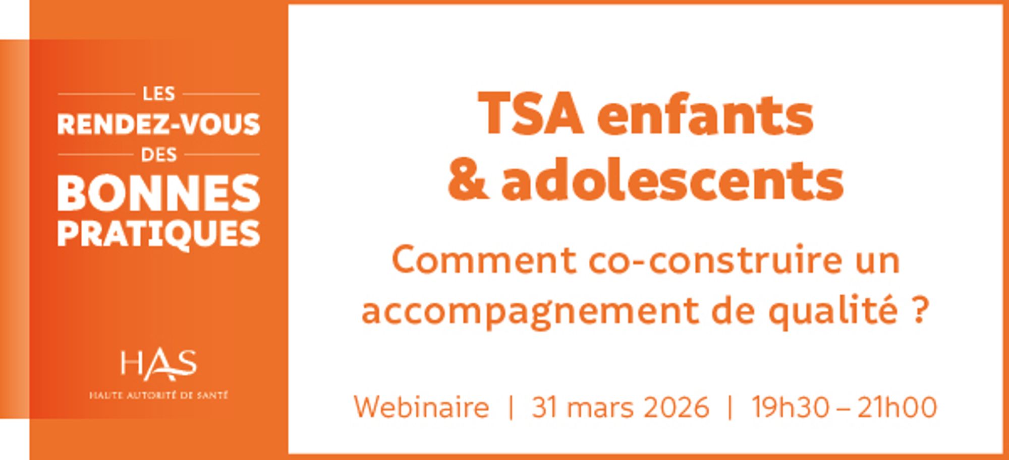 A l’occasion de la publication des nouvelles recommandations “Trouble du spectre de l’autisme (TSA) : interventions et parcours de vie du nourrisson, de l’enfant et de l’adolescent”, qui visent à améliorer la qualité des interventions et à favoriser l’accès à un parcours de vie cohérent et inclusif pour les enfants et adolescents autistes, la Haute Autorité de santé (HAS) organise un webinaire.