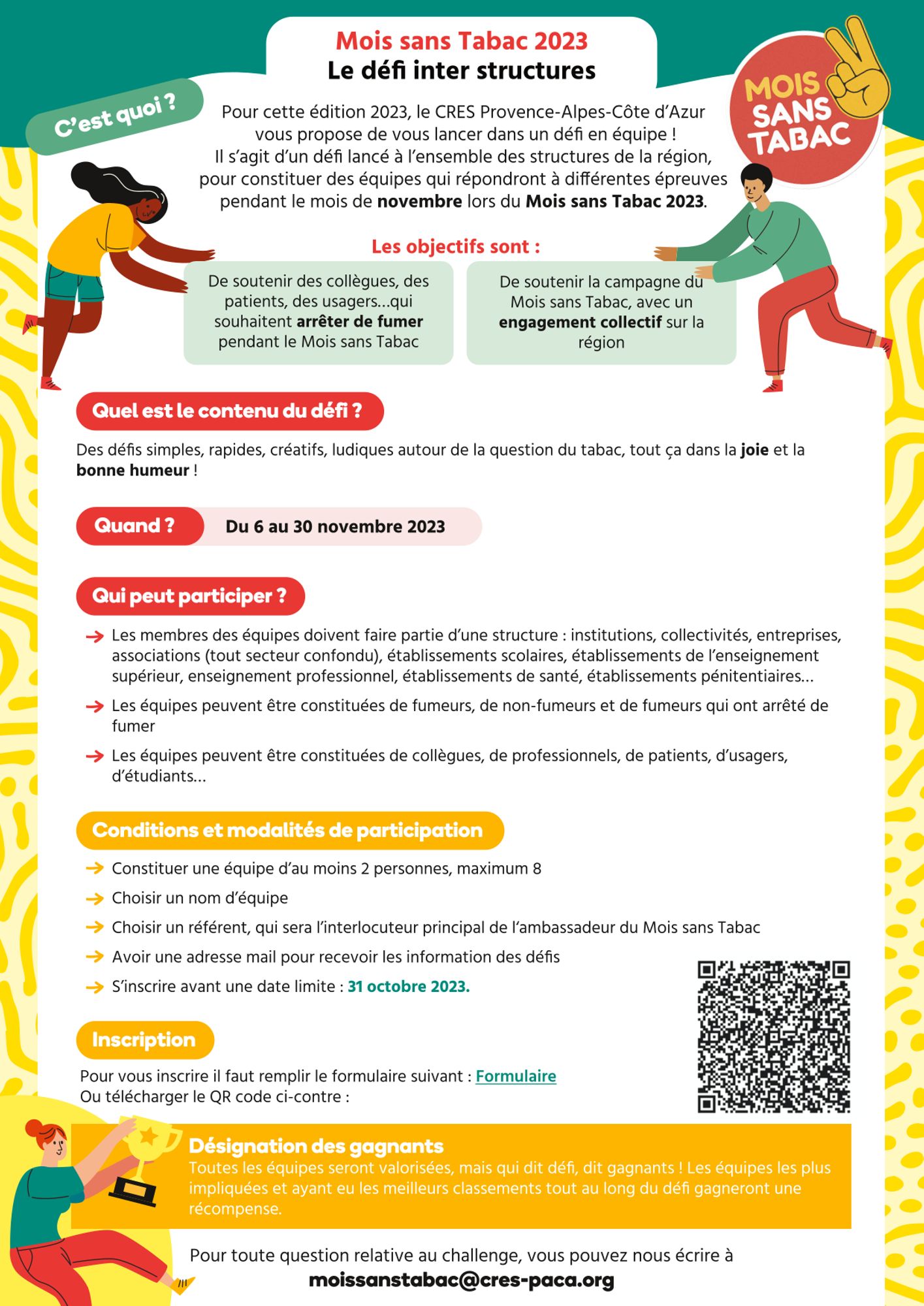 Dans le cadre de l'édition 2023 de la campagne Mois Sans Tabac, le CRES, ambassadeur du dispositif en région, a organisé cette année un nouveau challenge en équipe.