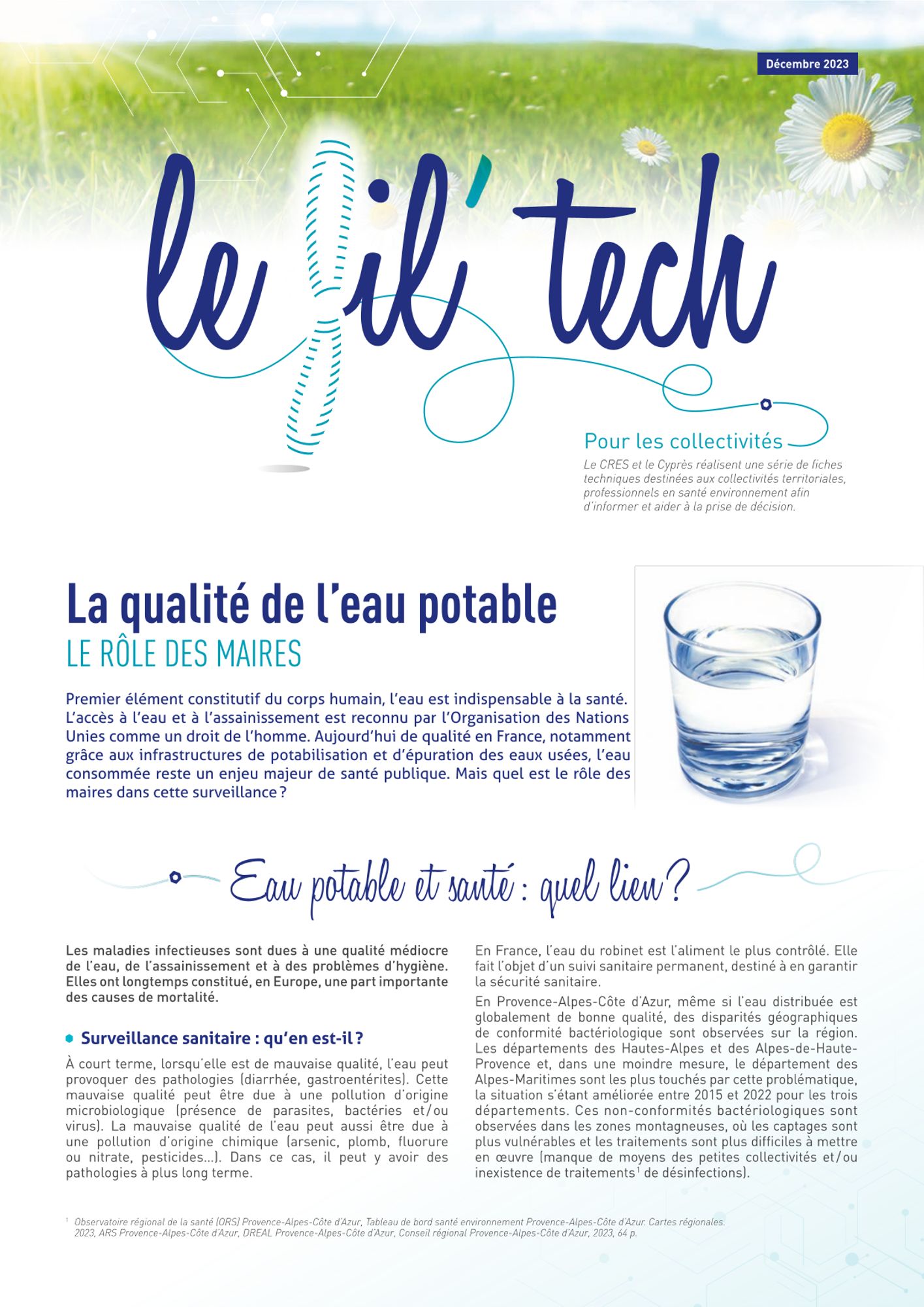 Ce numéro est dédié au rôle des maires dans la surveillance de la qualité de l'eau potable avec un volet sur la mise en oeuvre des Plan de Gestion de Sécurité Sanitaire des Eaux (PGSSE).