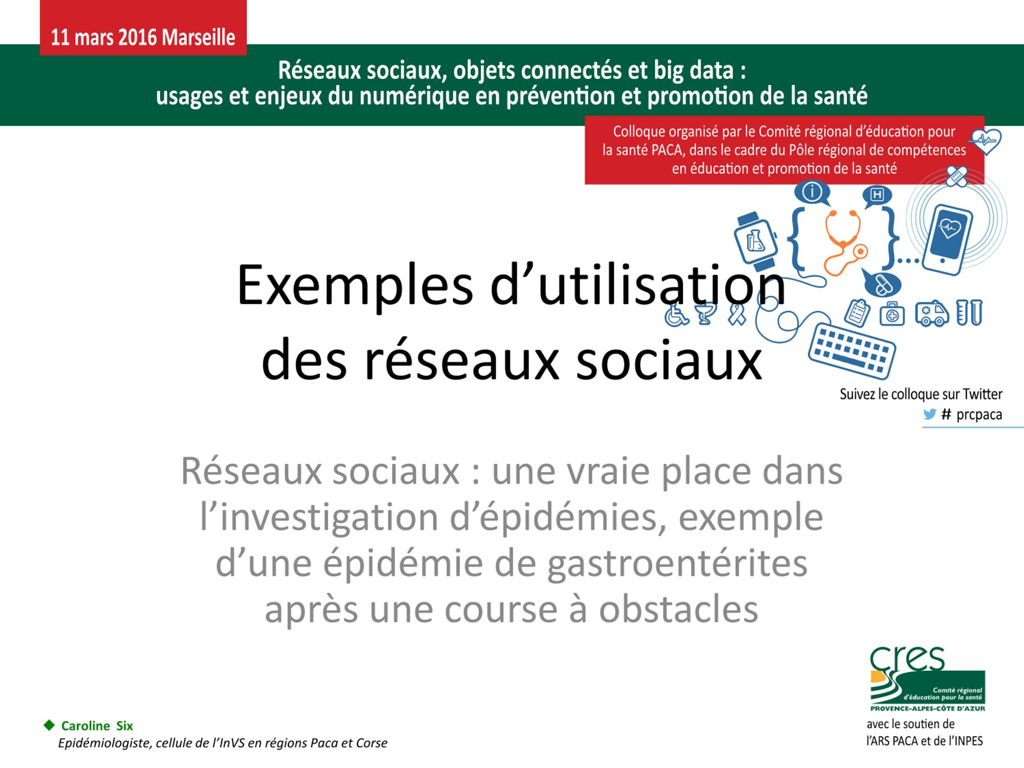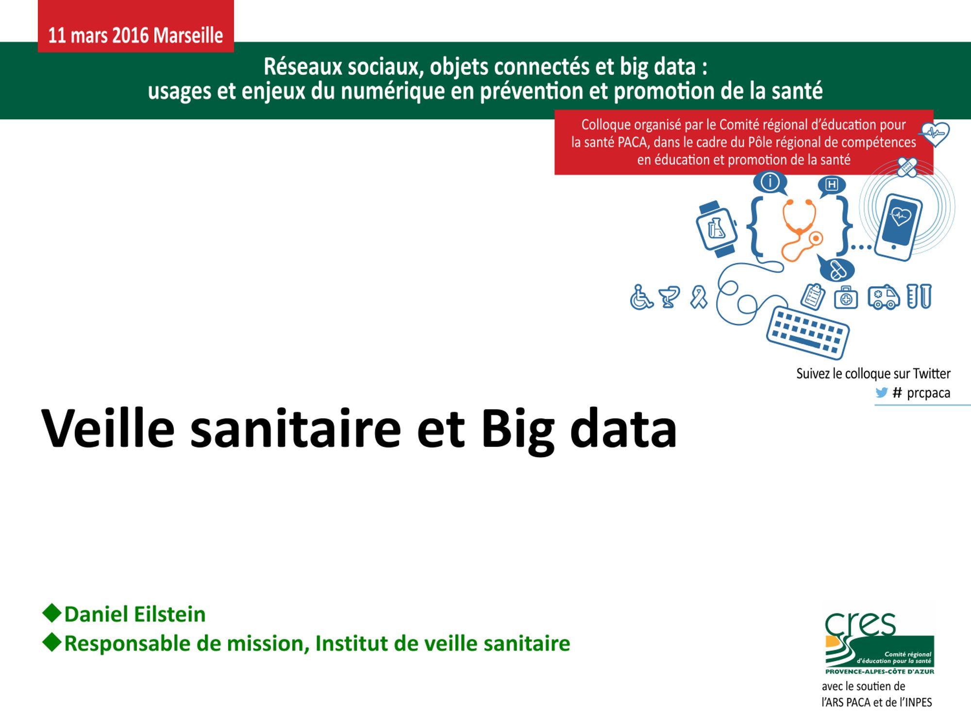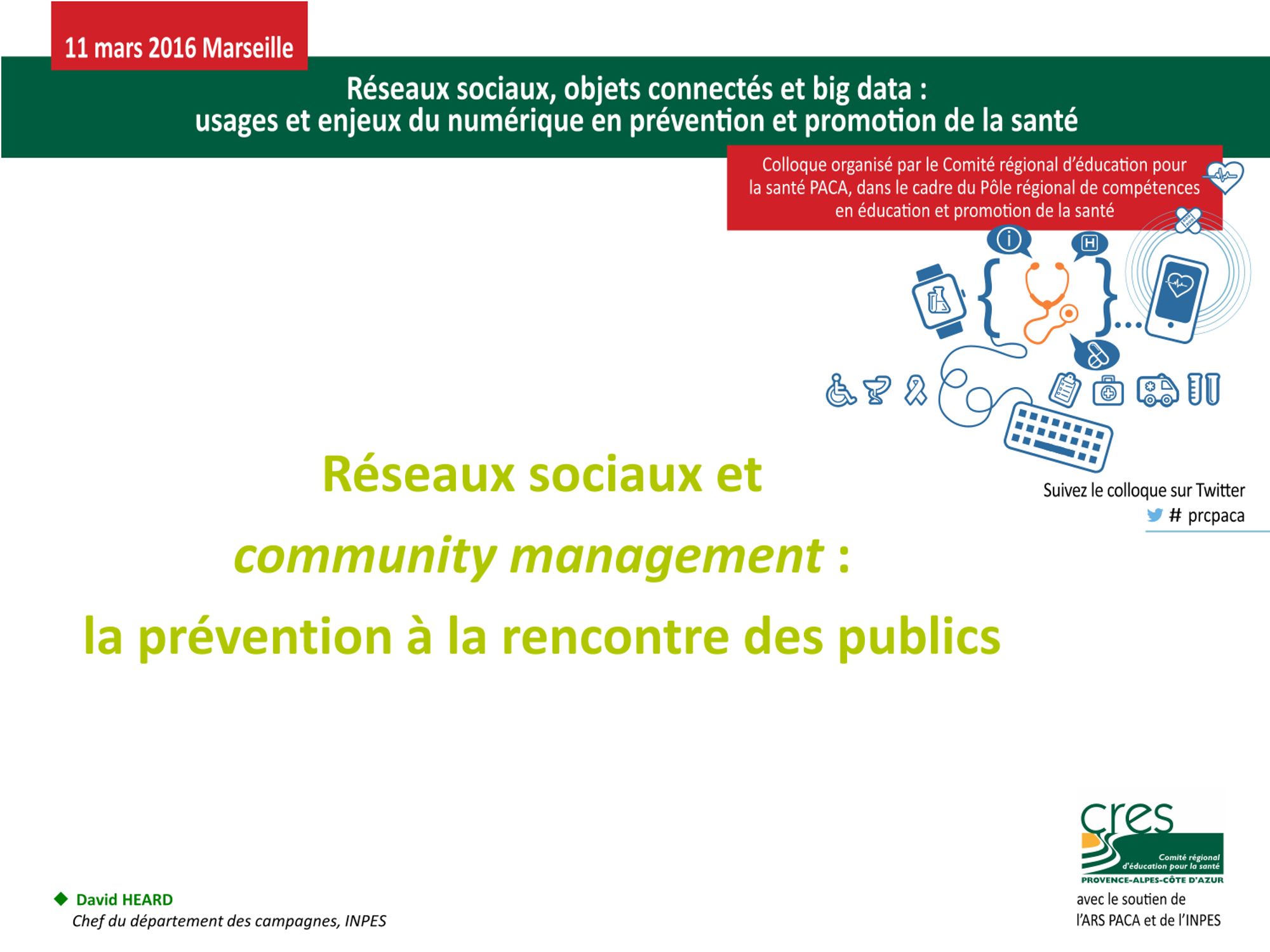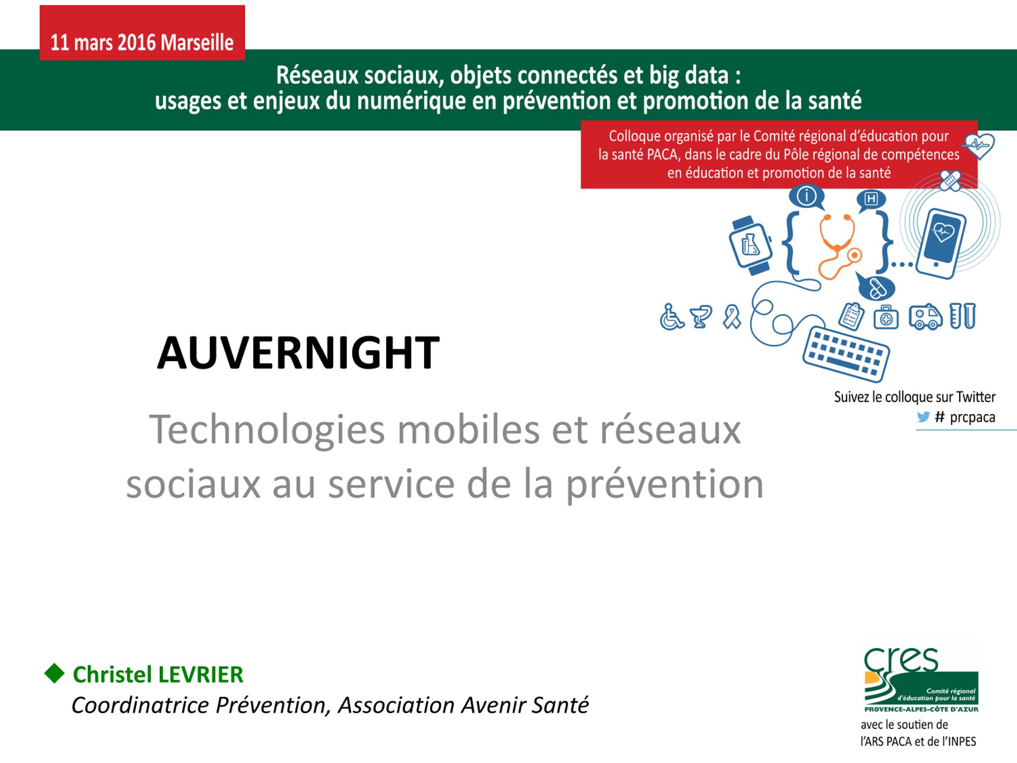 "Réseaux sociaux, objets connectés et big data : usages et enjeux du numérique en prévention et promotion de la santé" est le thème du colloque qu'a organisé le CRES PACA le 11 mars 2016 à Marseille, dans le cadre du pôle régional de compétences en éducation et promotion de la santé.