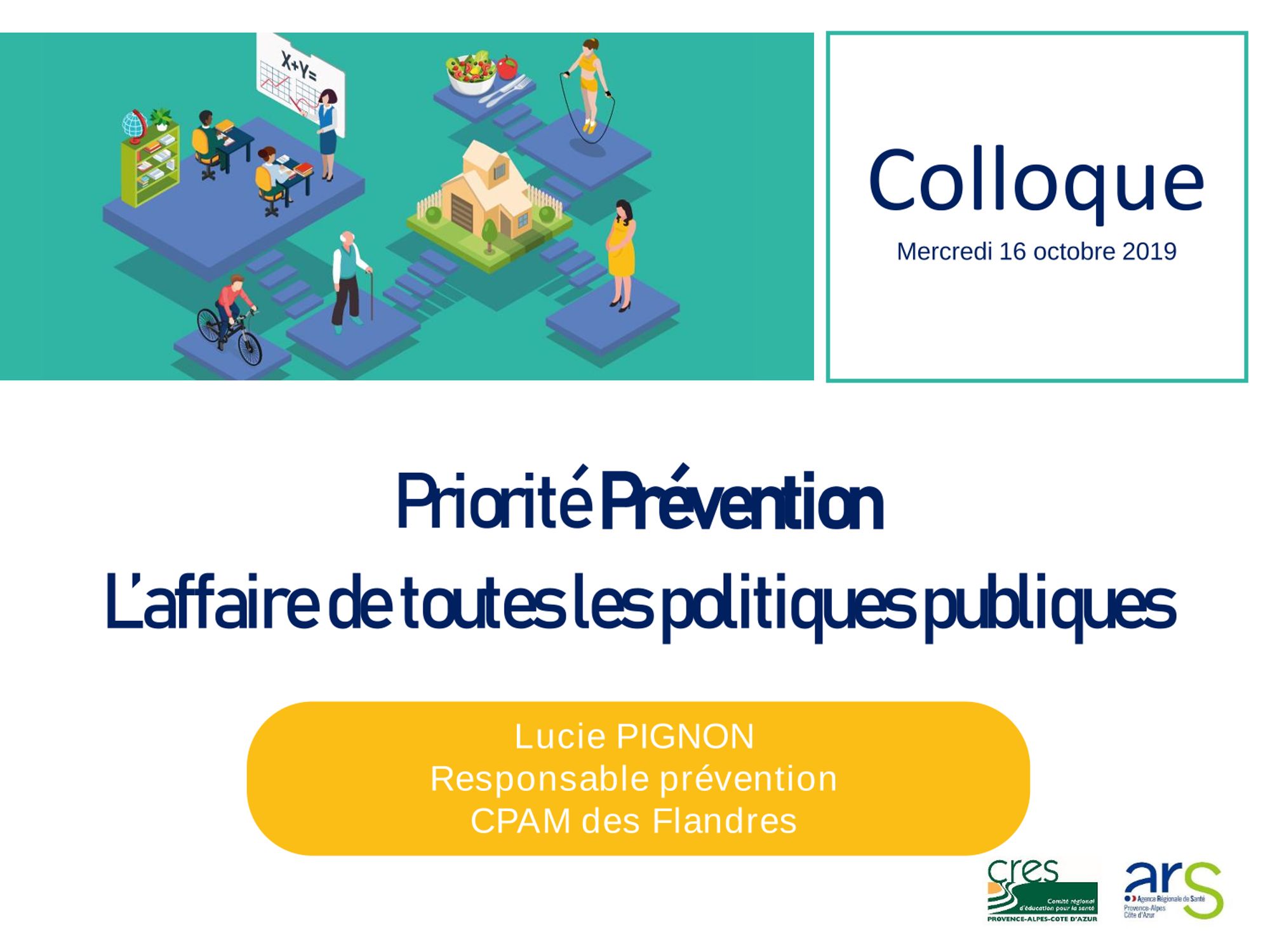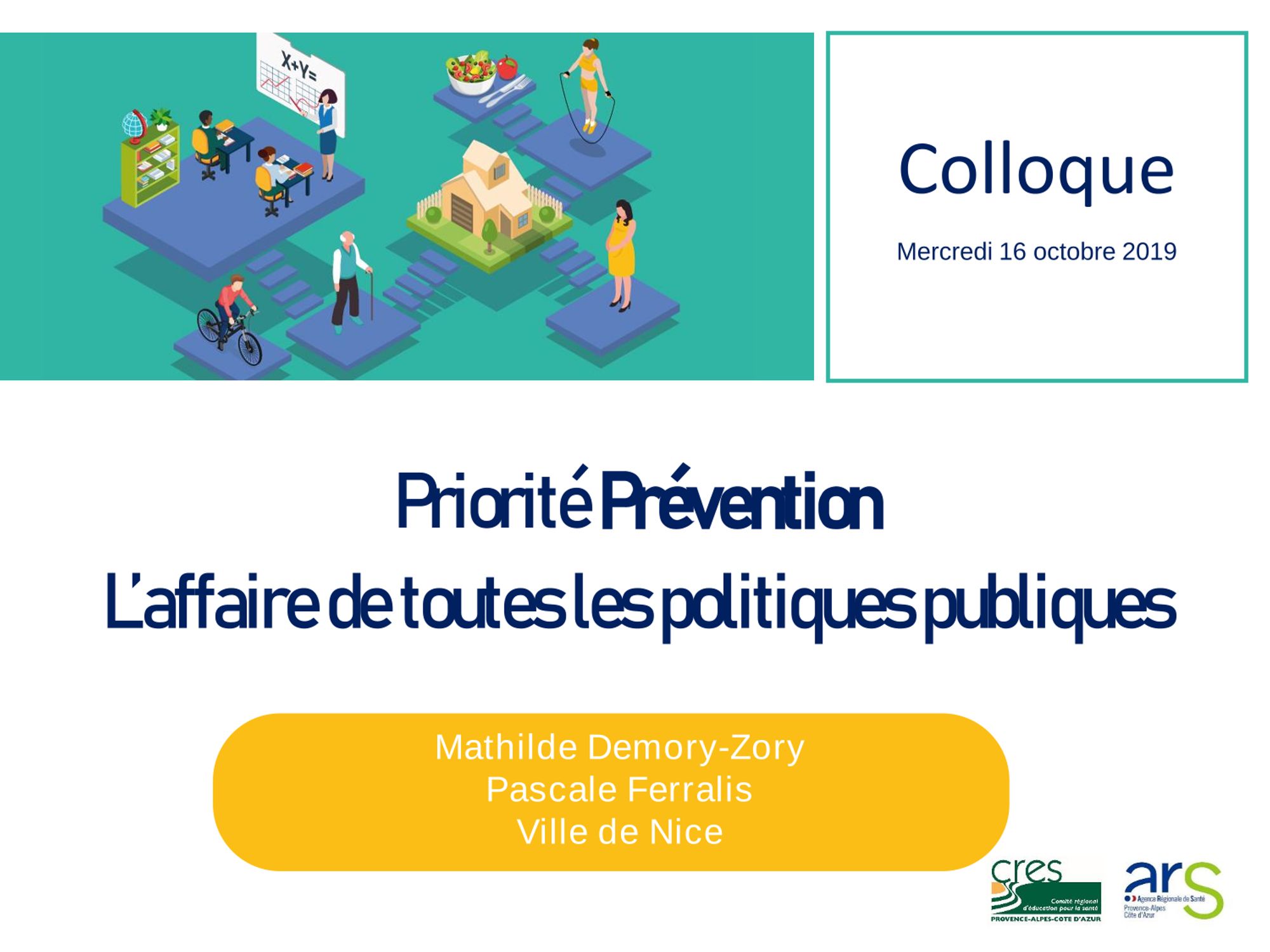 Le CRES et l'ARS Provence-Alpes-Côte d'Azur ont organisé un colloque à Marseille le 16 octobre 2019 sur le thème : "Priorité prévention : l’affaire de toutes les politiques publiques" .