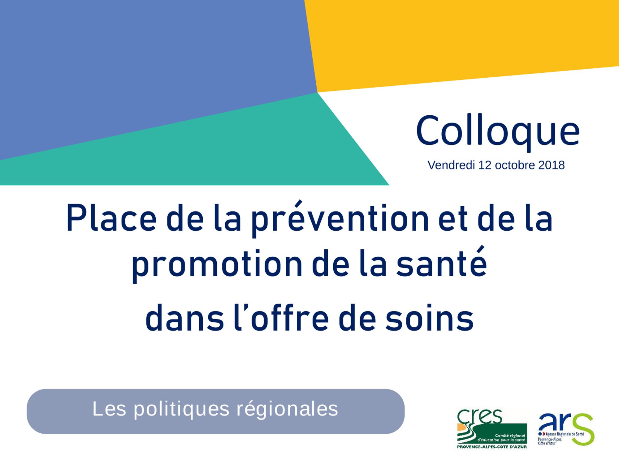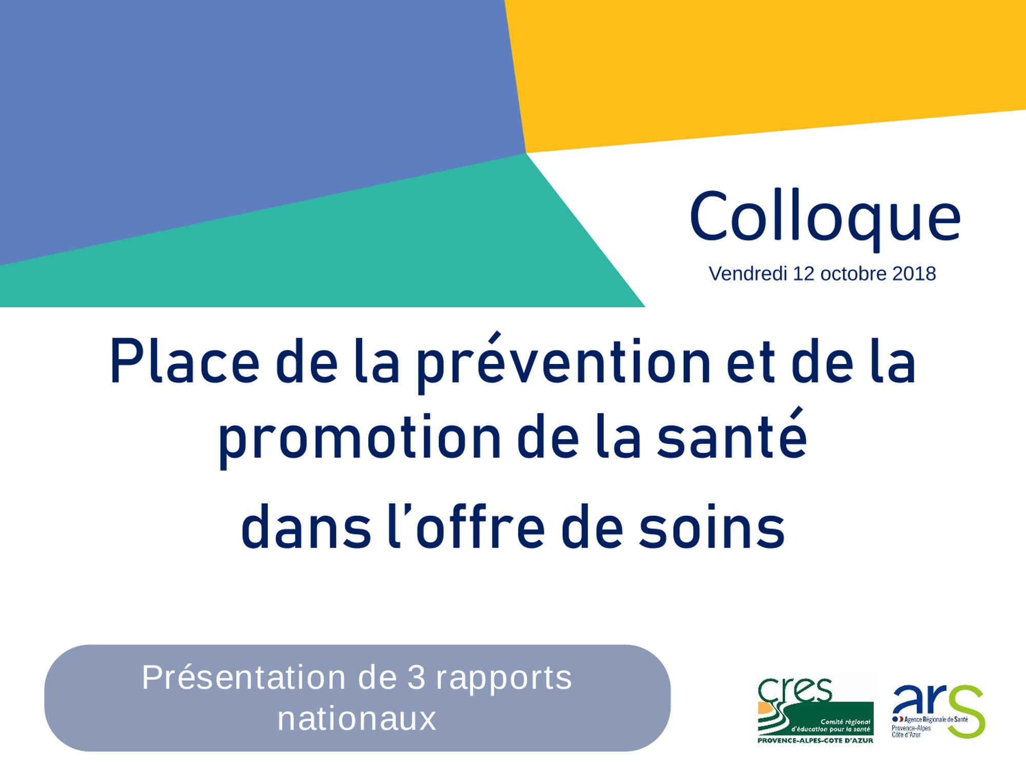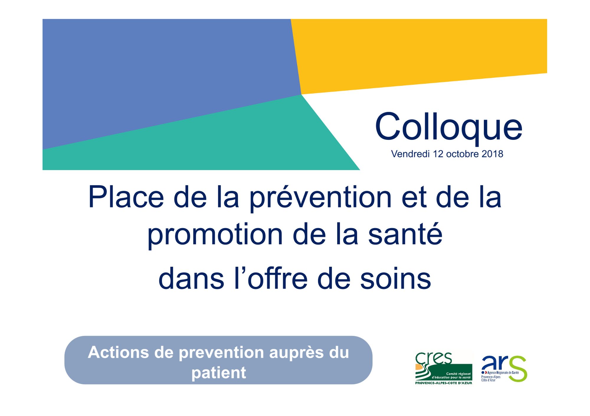 Un colloque sur la place de la prévention et de la promotion de la santé dans l'offre de soins a été organisé par le CRES et l'ARS PACA le 12 octobre 2018 à Marseille.