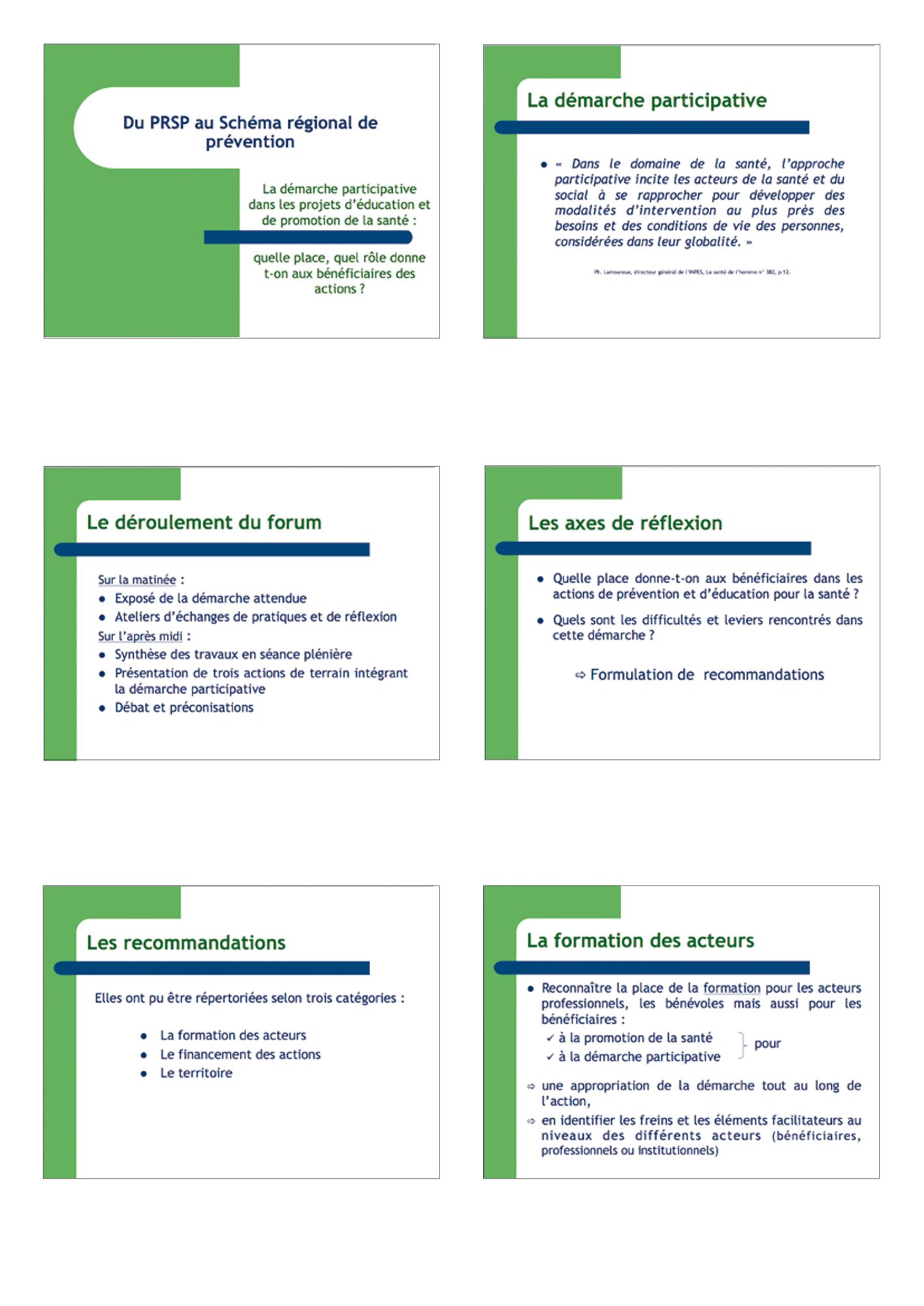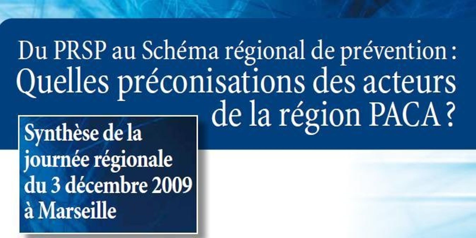 Du PRSP au Schéma régional de prévention : les préconisations des acteurs de la région PACA - Décembre 2009