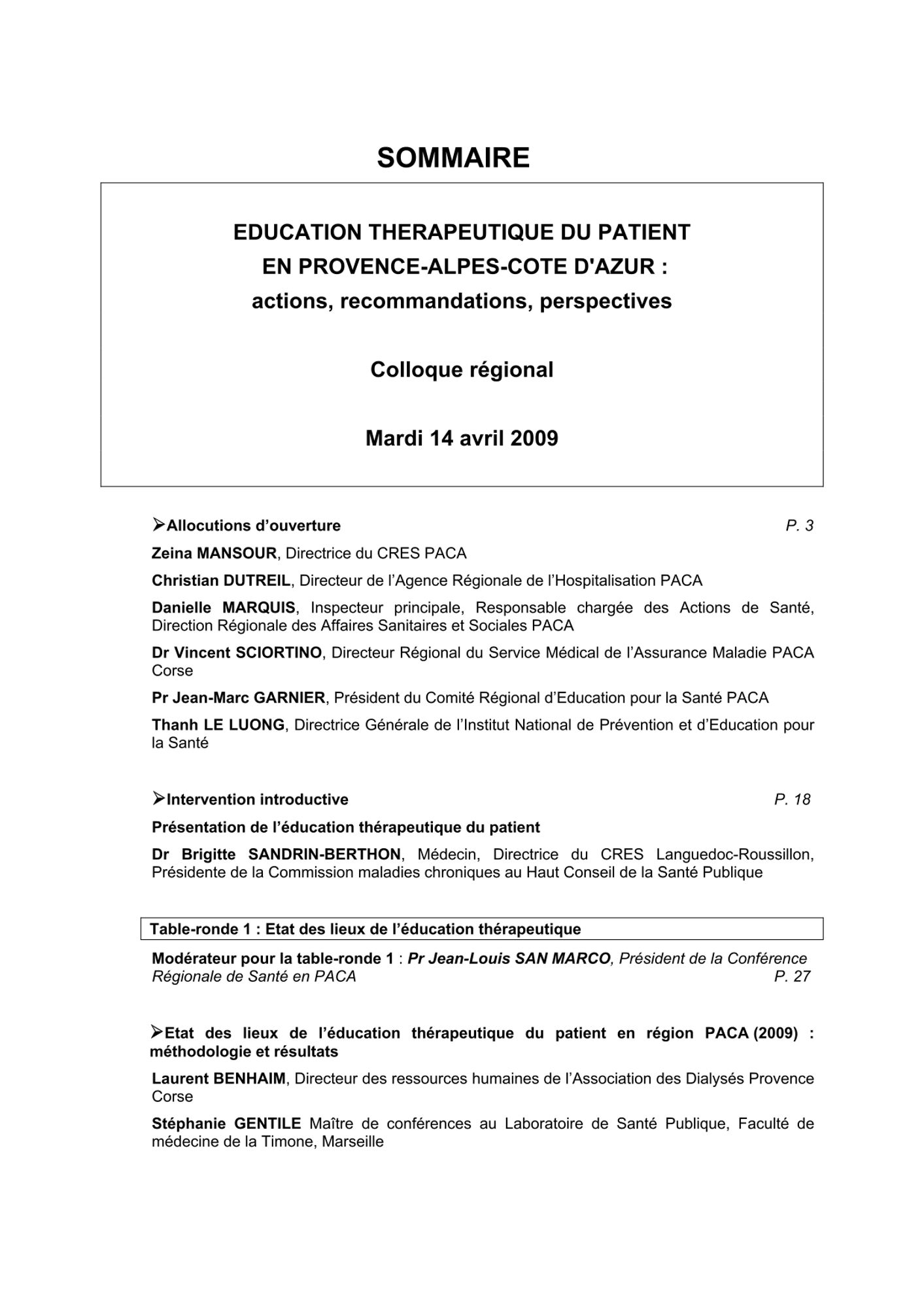 Actes du colloque régional sur l'éducation thérapeutique du patient organisé les 14 et 15 avril 2009 à Marseille.