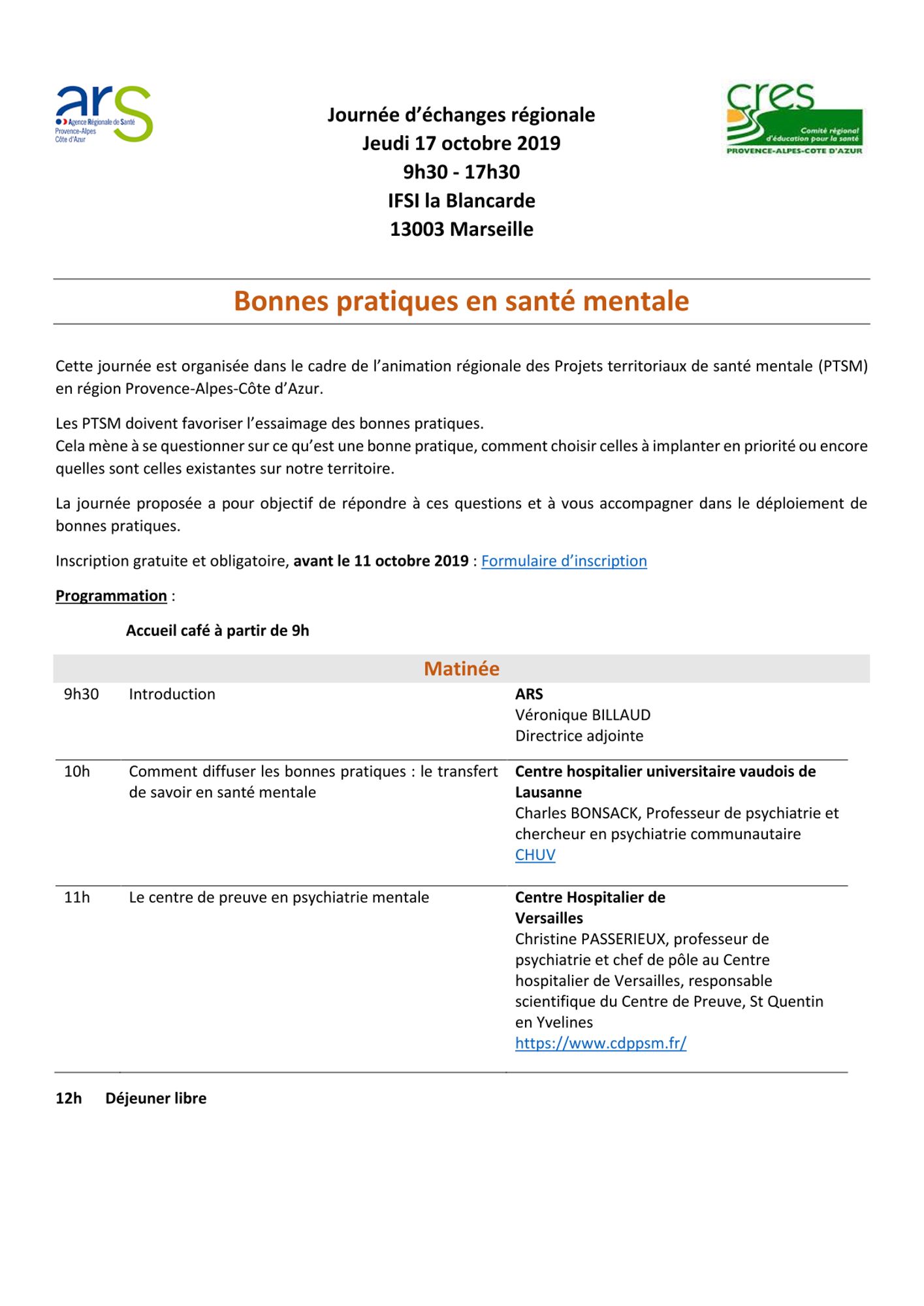 Organisée le 17 octobre 2019 à Marseille, la journée s'adressait aux acteurs de la santé mentale, aux usagers et aux représentants d’usagers.