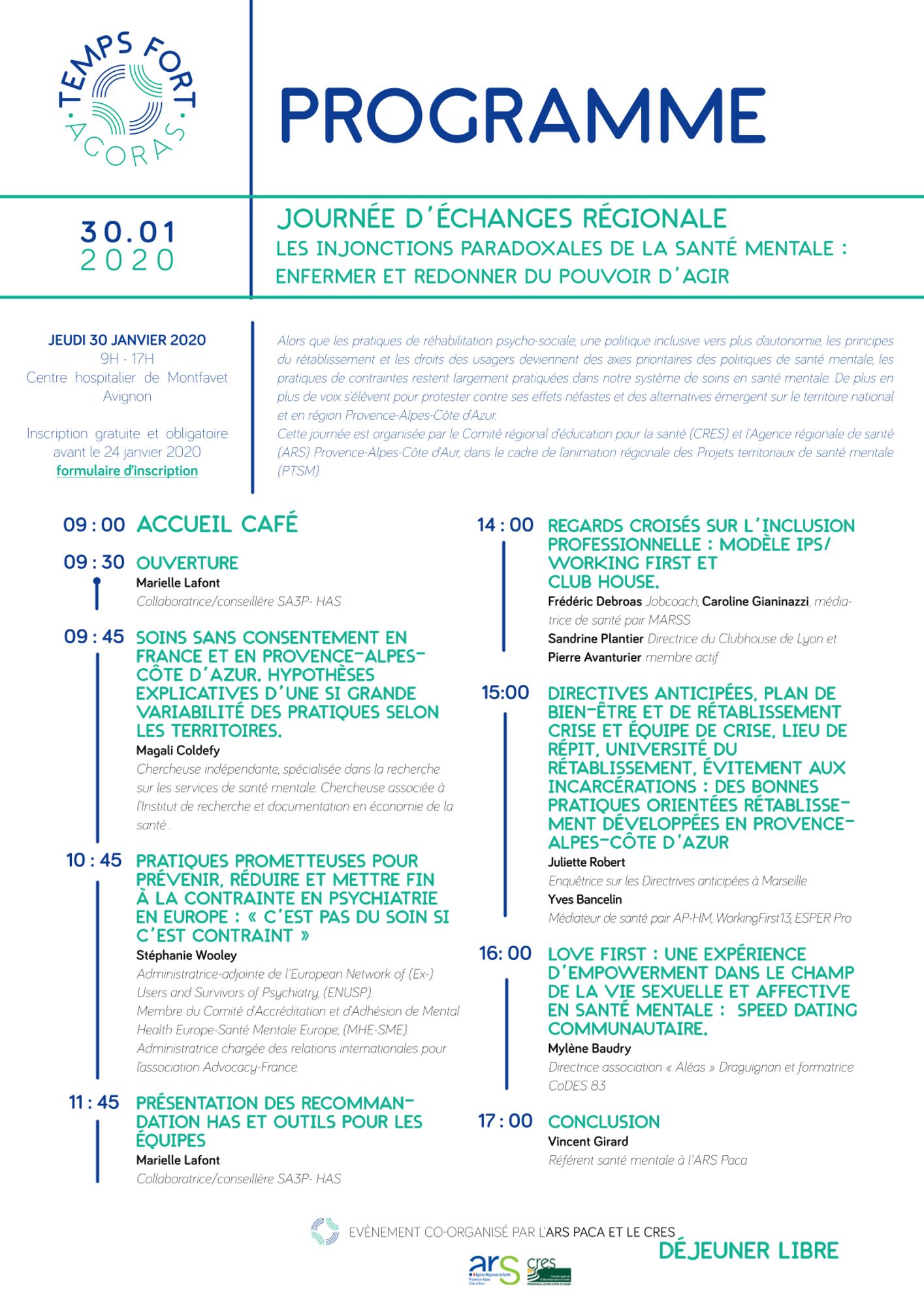 Organisée le 30 janvier 2020 à Avignon, la journée s'adressait aux acteurs de la santé mentale, aux usagers et aux représentants d’usagers.