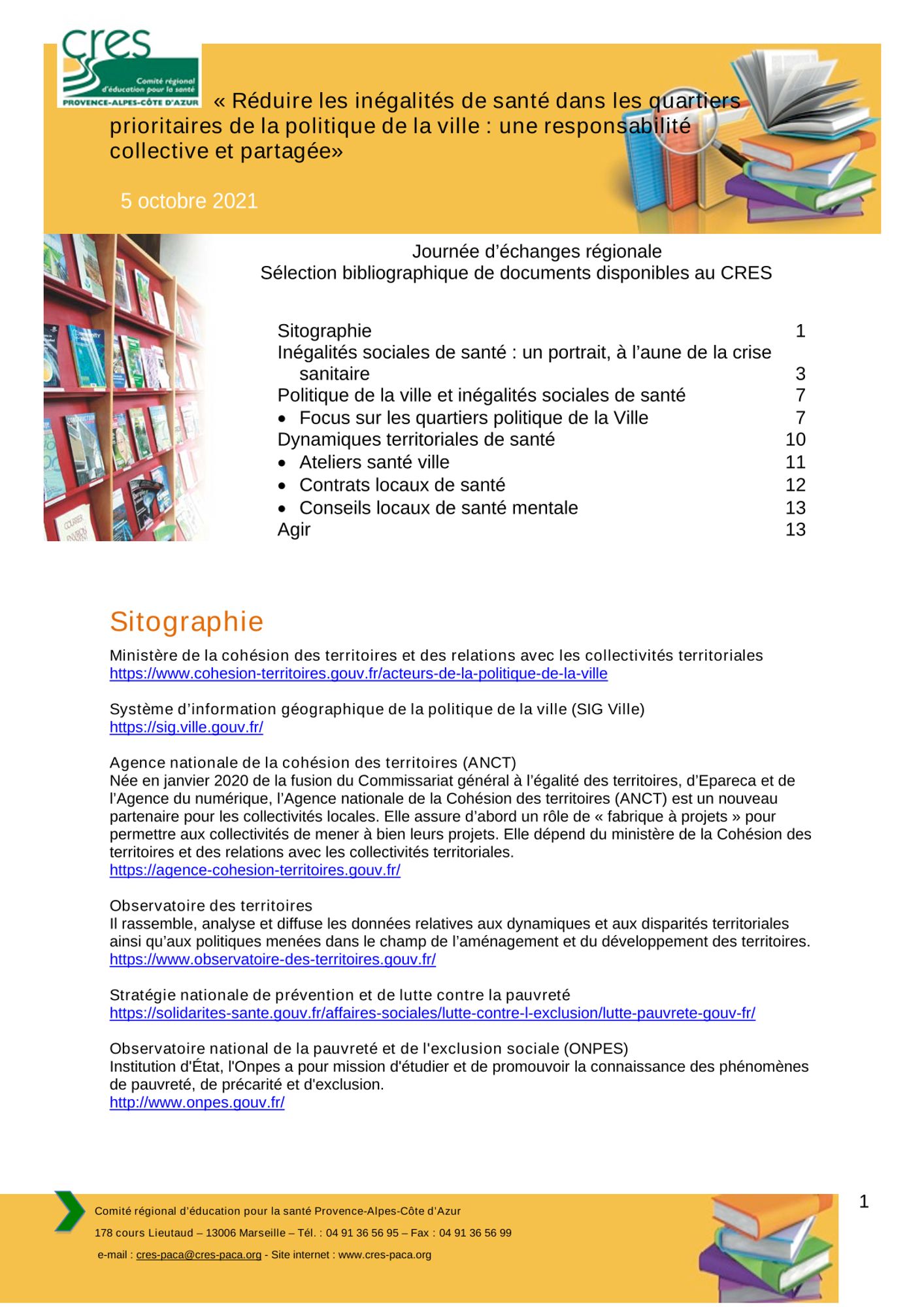 - l'évolution des politiques régionales de santé et de la politique de la ville