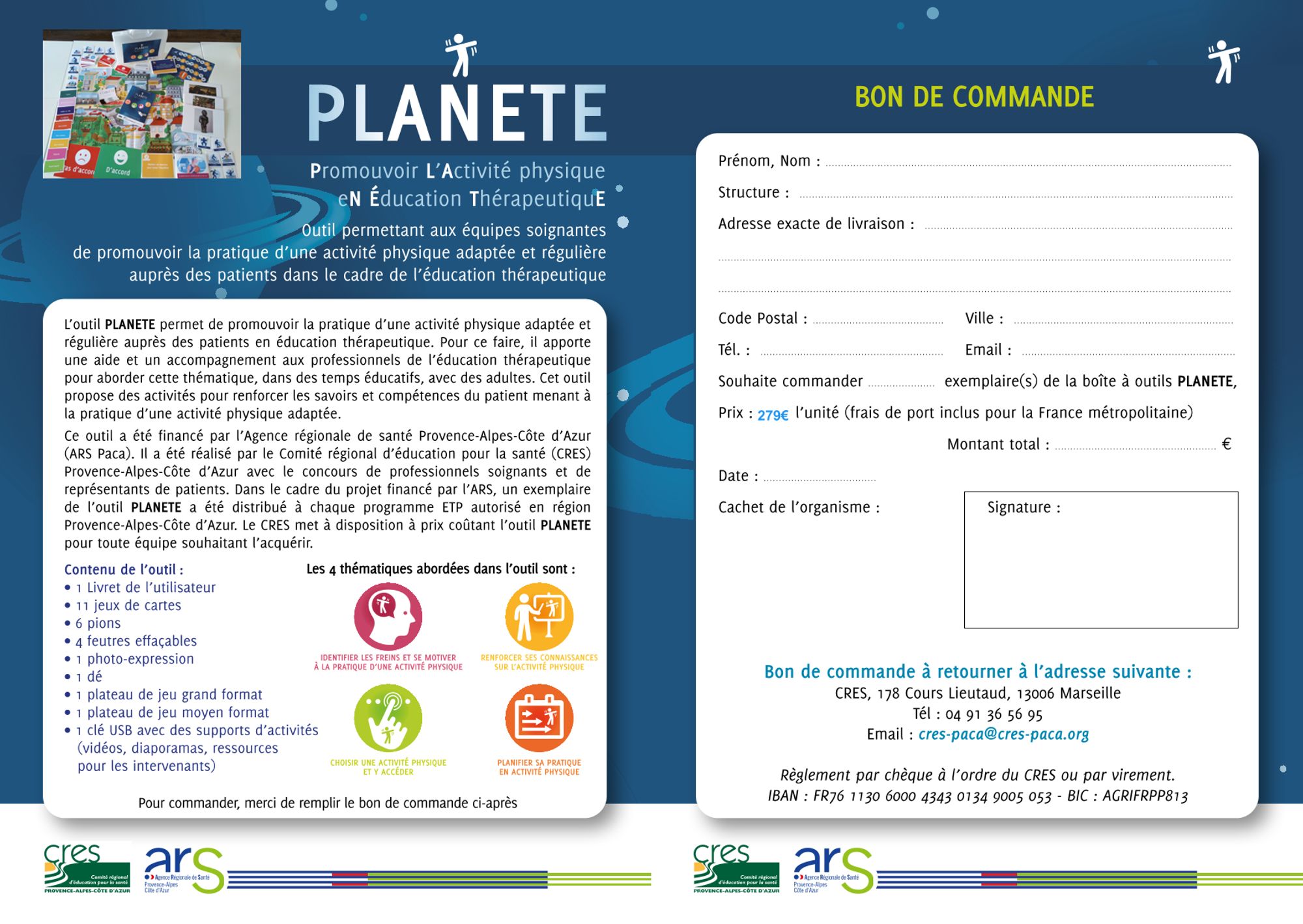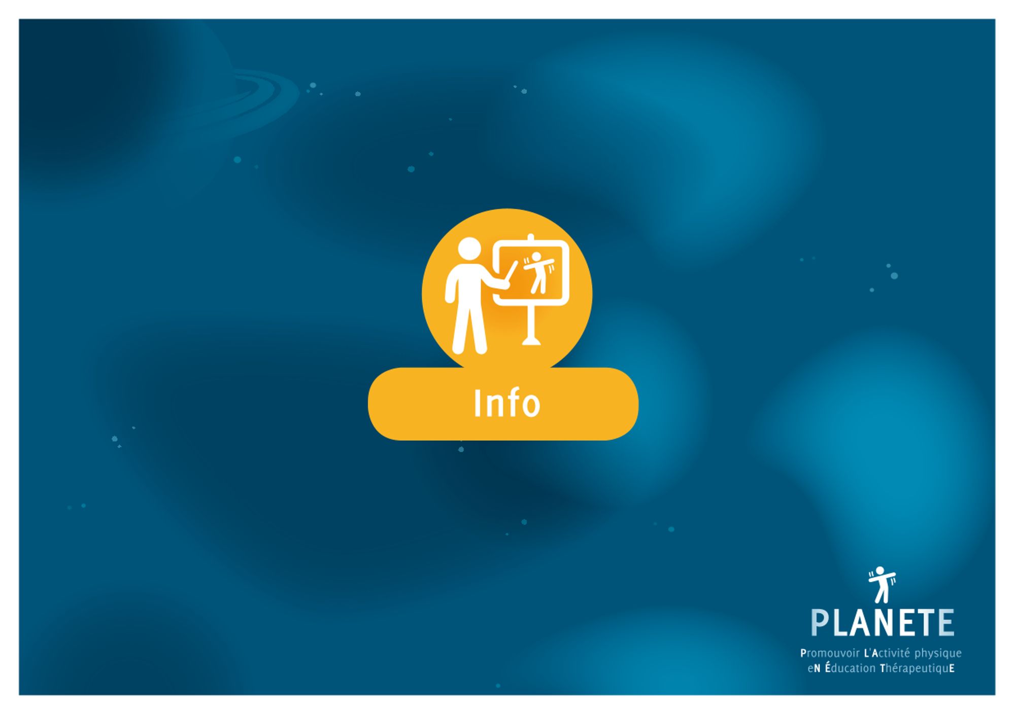 L’objectif de la mallette PLANETE (Promouvoir L’Activité physique eN Education ThérapeutiquE) est de fournir aux professionnels de santé toute une série d’activités et de ressources clés en mains pour mieux intégrer cette dimension dans les programmes d’éducation thérapeutique du patient, quelle que soit la pathologie concernée.