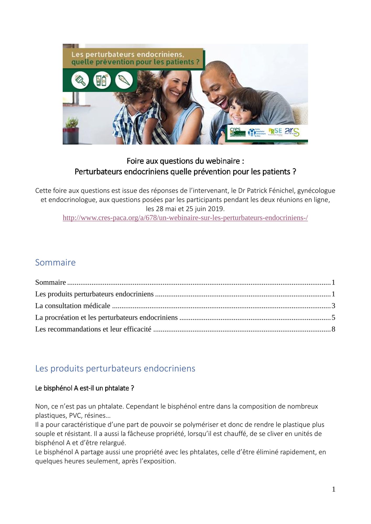 Qu’est-ce qu’un perturbateur endocrinien ? Où pouvons-nous les trouver ? Quel impact sur la santé de la population ? Comment conseiller les patients pour réduire leur exposition ? Le Pr Patrick Fénichel, endocrinologue et gynécologue au CHU de Nice, est intervenu en direct pour répondre à ces questions ainsi qu’à celles des participants en direct sur Internet en mai et juin 2019.