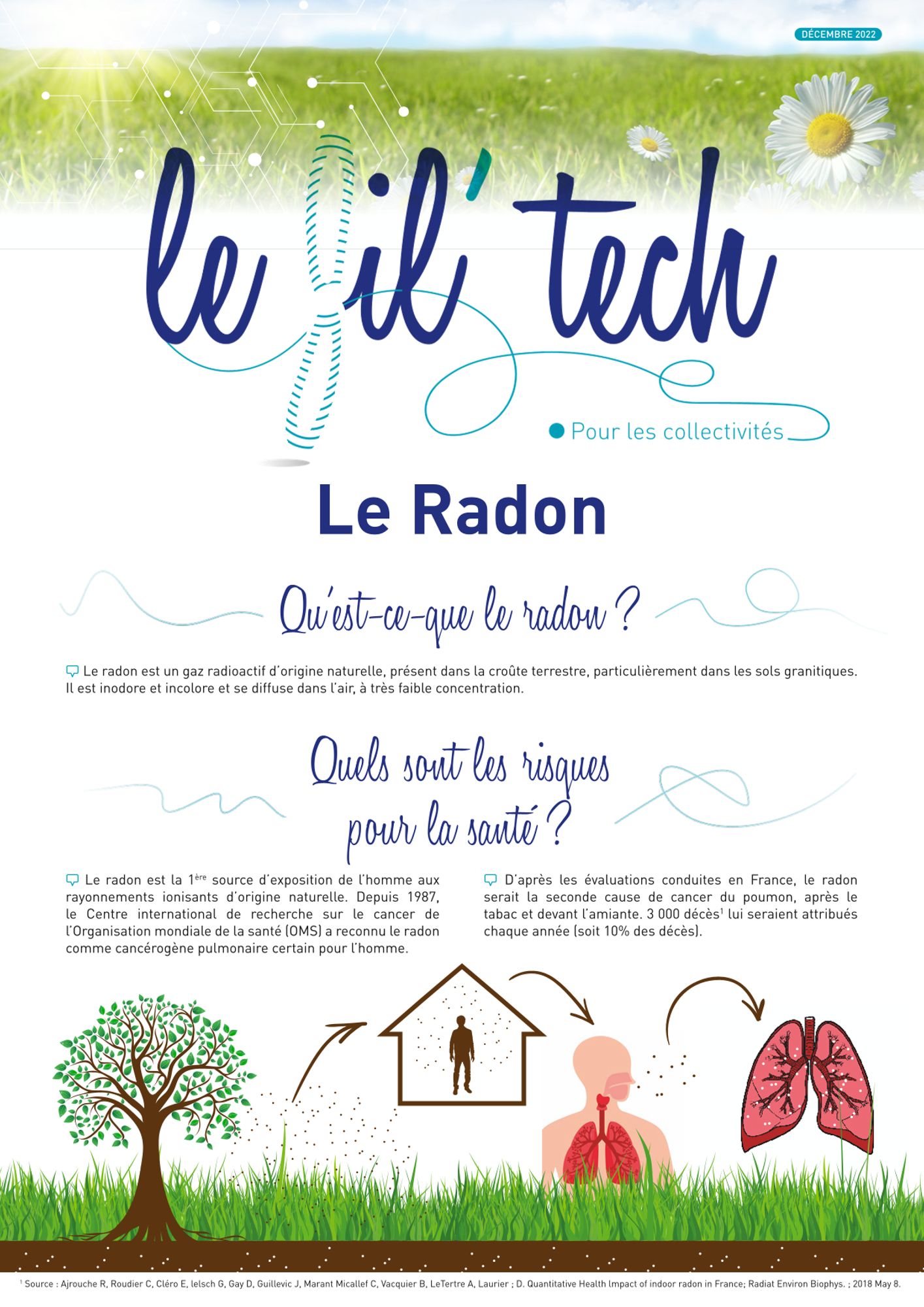 Le premier numéro a pour thème le radon et s'adresse aux collectivités territoriales. Il fait le point sur les risques pour la santé, le rôle des collectivités, les gestes de prévention et à qui s'adresser quand sa collectivité est concernée.