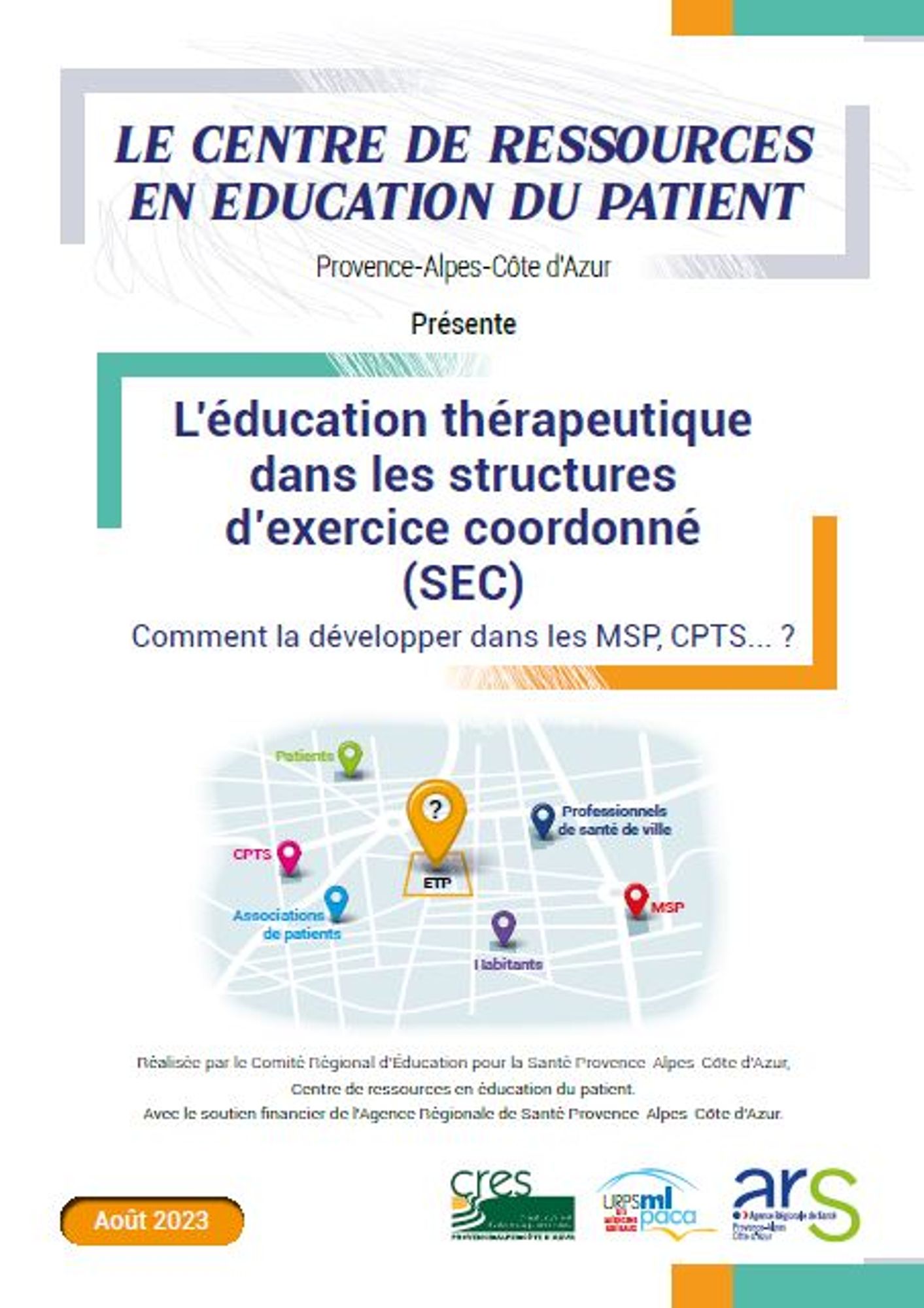 Le CRES, en partenariat avec l'ARS PACA et l'URPS médecins libéraux, et dans le cadre d'un groupe de travail pluriprofessionnel, a conçu en 2023 un guide méthodologique pour favoriser le développement de l'éducation thérapeutique du patient (ETP) dans les structures d'exercice coordonné.