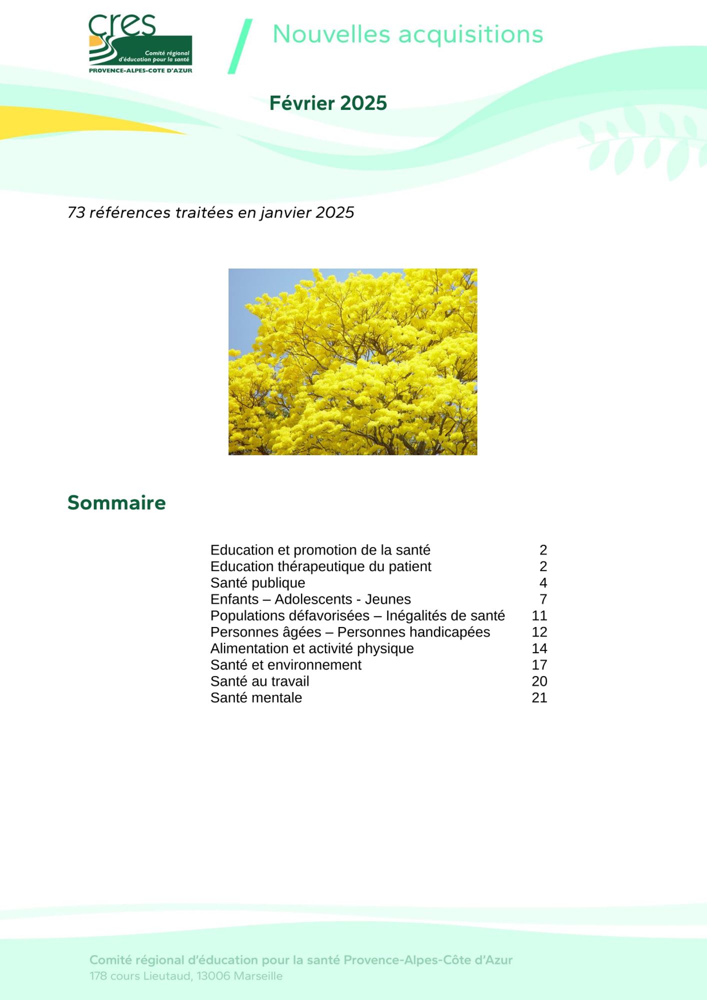 Nouvelles acquisitions du CRES Consultez les acquisitions du CRES de décembre 2025 (442.5 Ko) gaelle.lhours@cres-paca.org