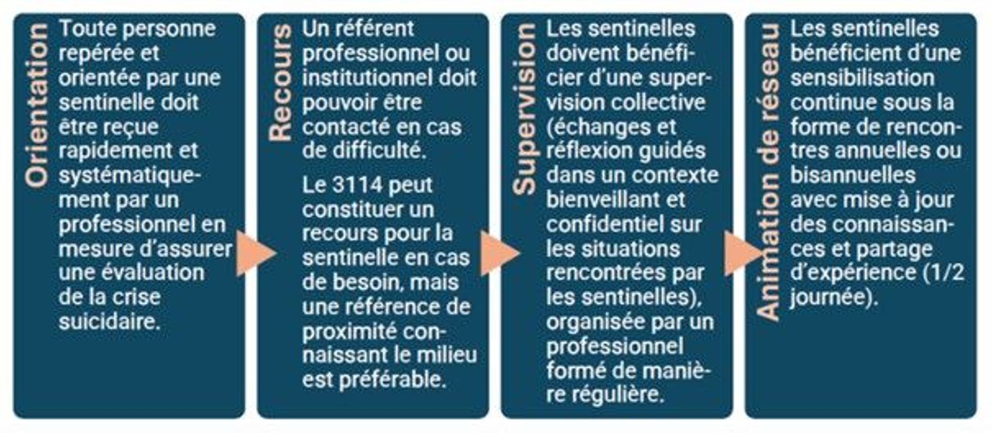 Plus qu’une simple formation, le module Sentinelle participe d’un dispositif de prévention plus large dit « dispositif Sentinelle » : le déploiement d’un réseau d’acteurs volontaires spécialement identifiés, formés et accompagnés.