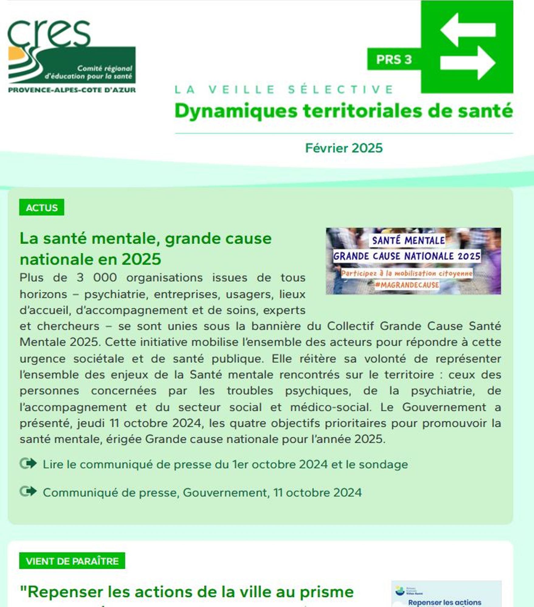 Pour rester informé de l'actualité des dynamiques territoriales de santé, recevoir les dernières publications, découvrir des outils et des ressources... abonnez-vous à notre veille sélective, réalisée périodiquement par l'équipe des documentalistes du CRES.