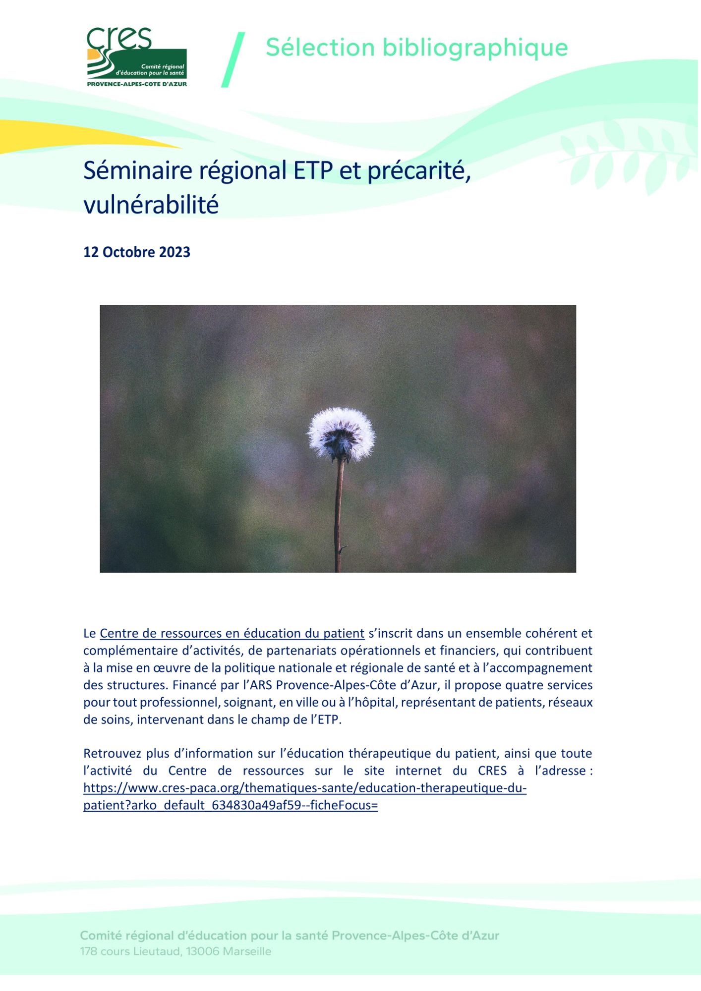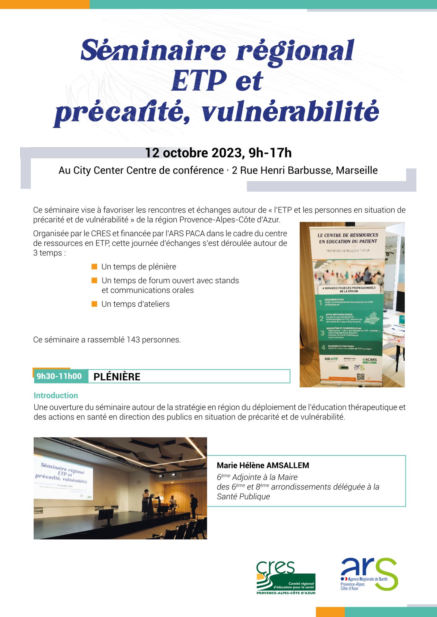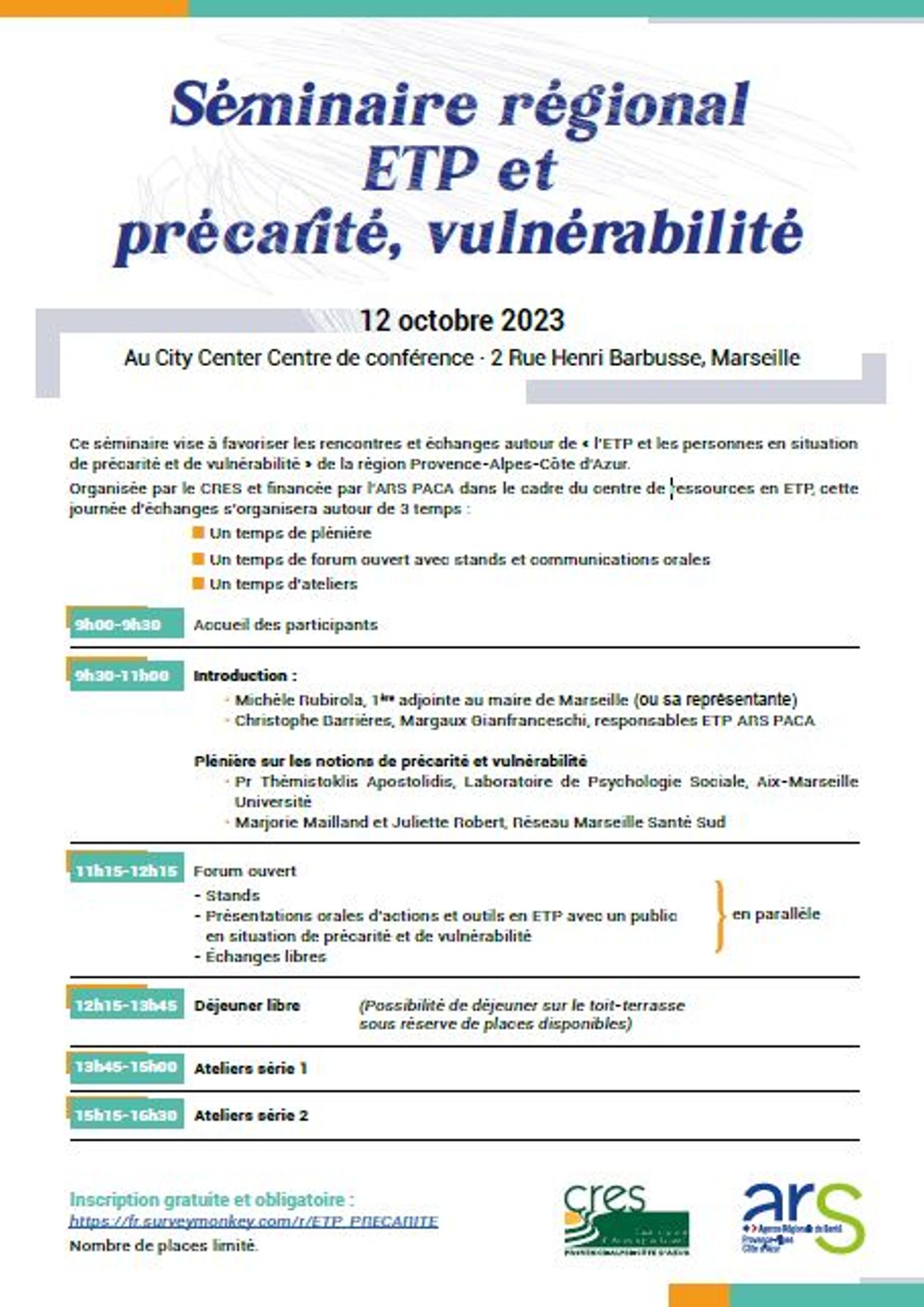 Séminaire régional. ETP et précarité, vulnérabilité, 12 octobre 2023