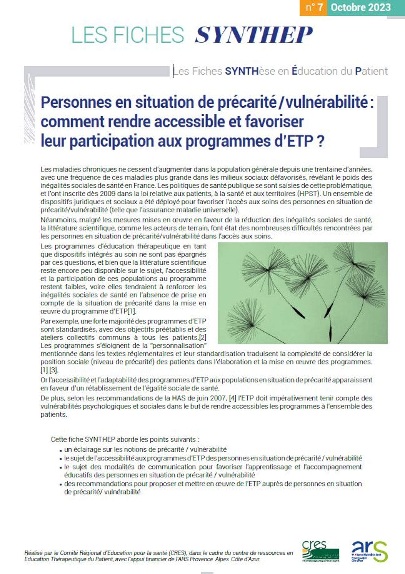 Ce séminaire visait à favoriser les rencontres et échanges autour de « l’ETP et les personnes en situation de précarité et de vulnérabilité » de la région Provence-Alpes-Côte d’Azur.