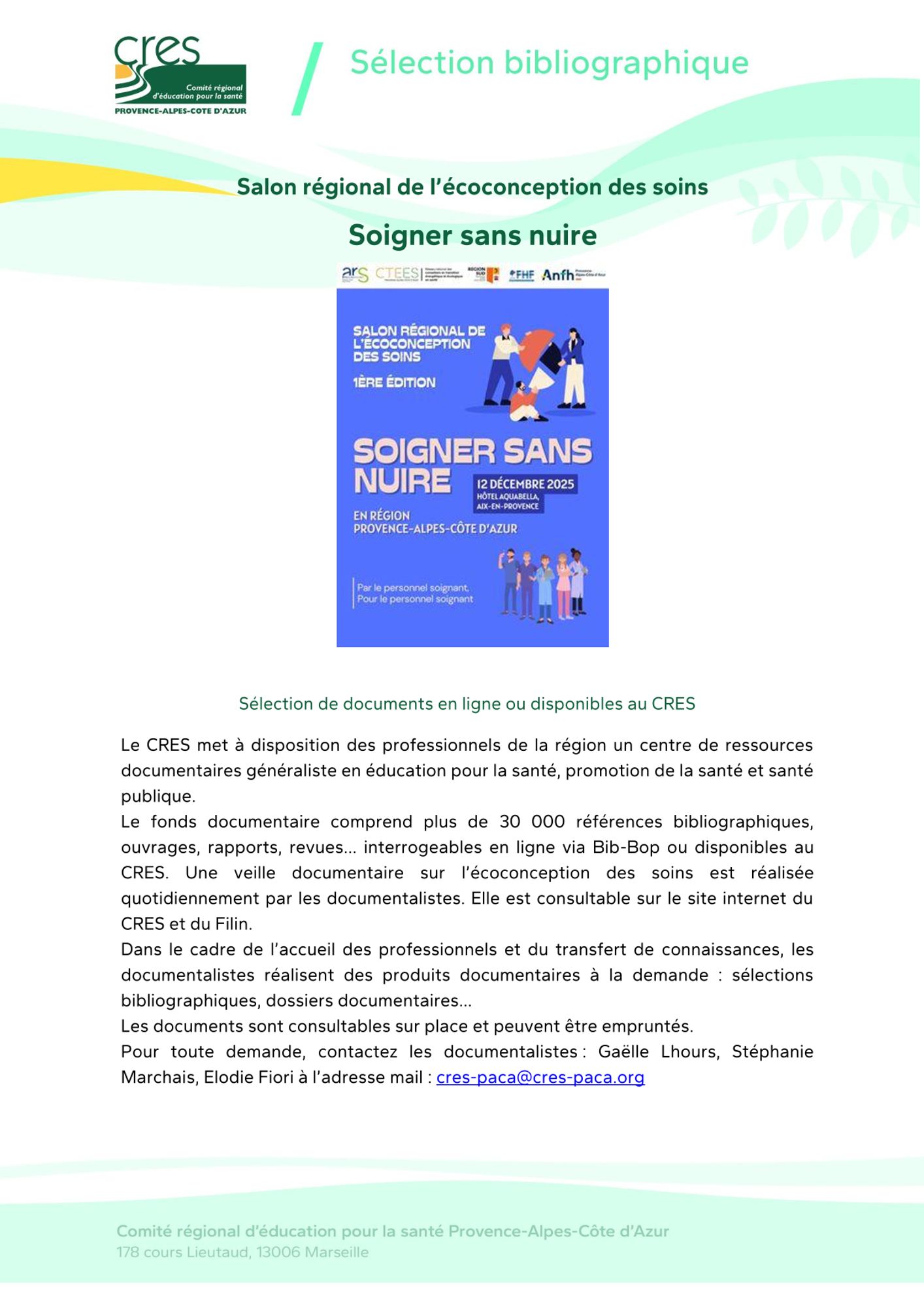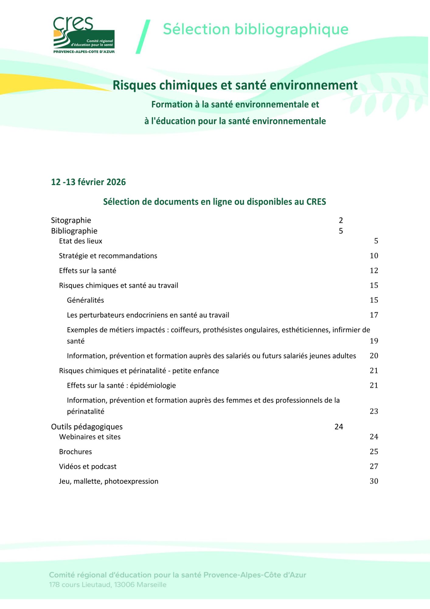 Dans le cadre du Plan régional santé environnement Provence-Alpes-Côte d’Azur, les documentalistes du Comité régional d’éducation pour la santé Provence-Alpes-Côte d’Azur (CRES) et du Centre d’information pour la prévention des risques majeurs (CYPRES) vous proposent différents outils d'information en santé environnementale :