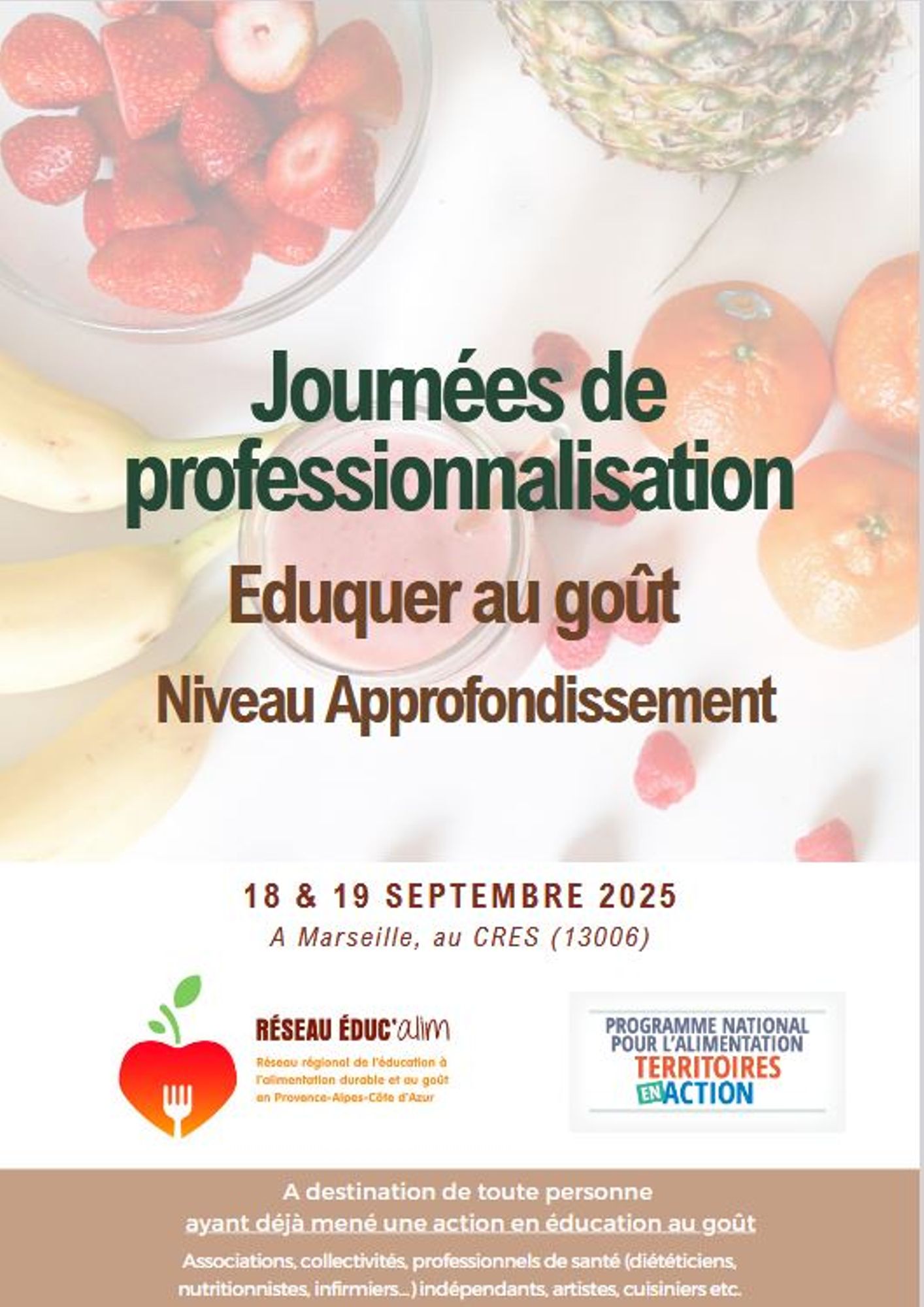 Elles s'adressent à toute personne ayant déjà mené des actions en éducation au goût et qui souhaitent perfectionner leurs pratiques : associations, collectivités, professionnels de santé (diététiciens, nutritionnistes, infirmiers...), indépendants, cuisiniers, etc.
