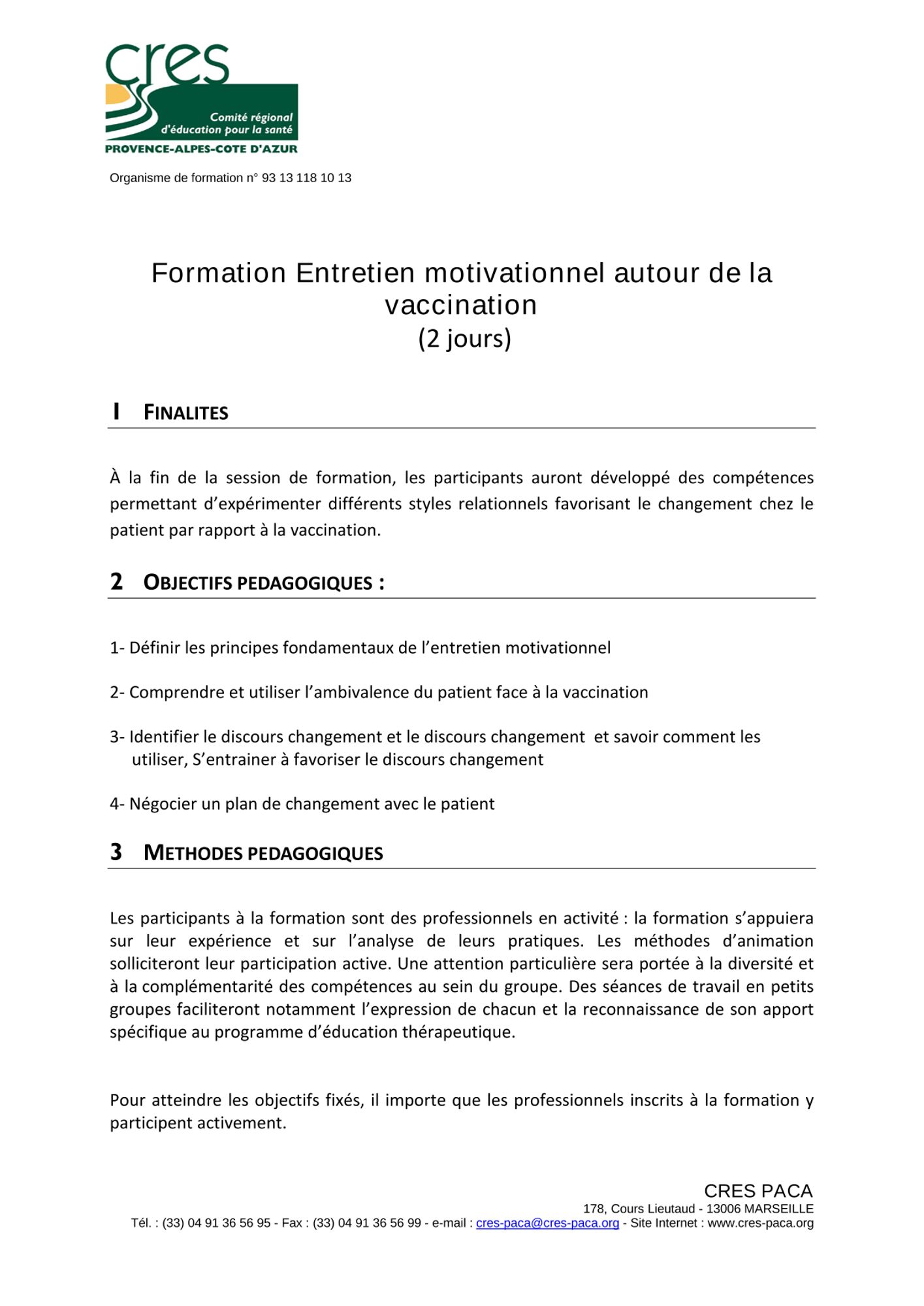 Le CRES propose différents formats de sensibilisation et de formation à l'approche de l'entretien motivationnel en vaccination.