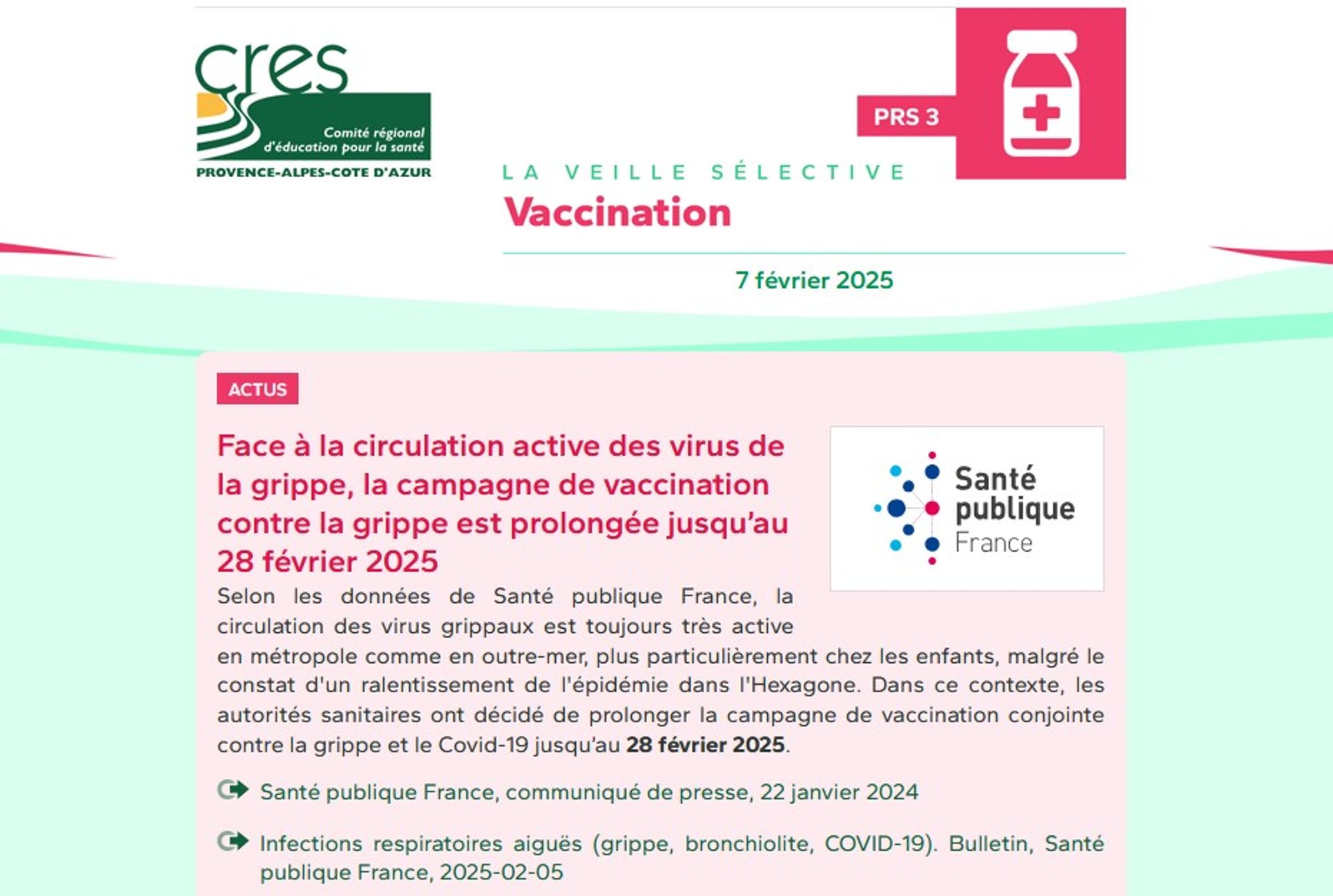 Le CRES réalise en continu une veille documentaire sur l'actualité de la prévention et de la santé publique. Une quinzaine de thématiques sont concernées, dont la vaccination.