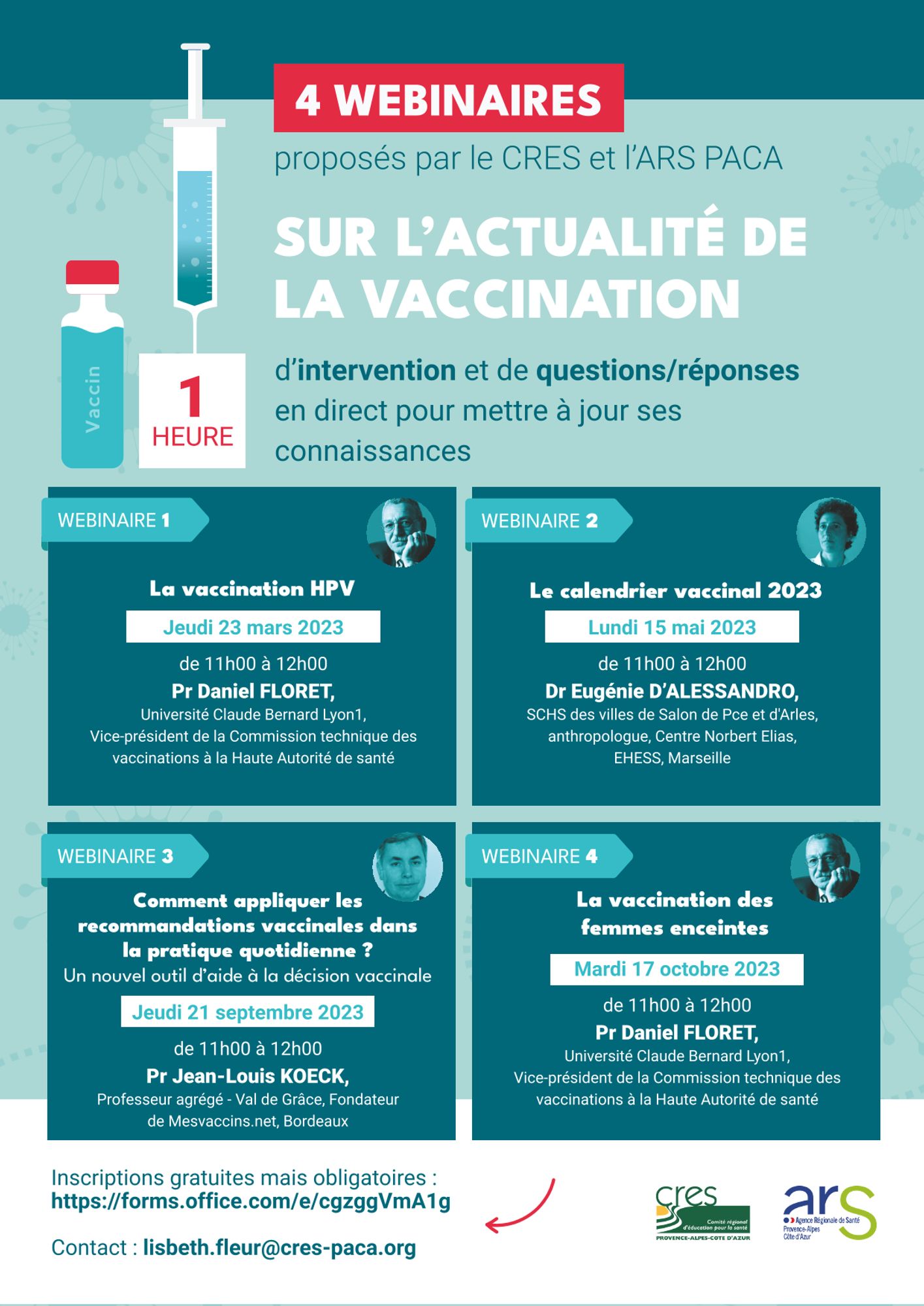 Le CRES, en partenariat avec l'ARS PACA, propose en 2023 pour la troisième année consécutive une série de webinaires sur la vaccination, pour les professionnels de santé et de prévention de la région.