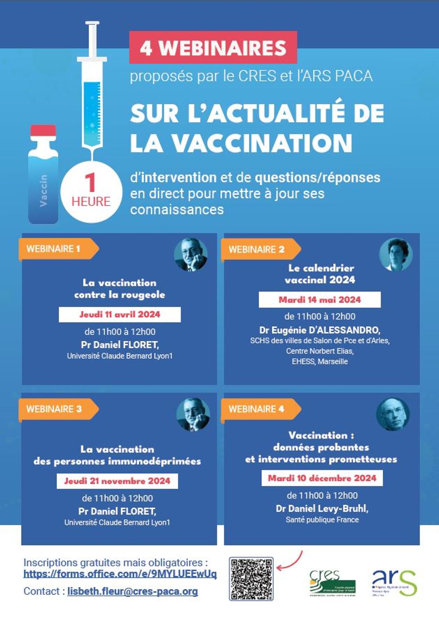 Le CRES, en partenariat avec l'ARS PACA, propose en 2024 une série de 4 webinaires sur la vaccination, pour les professionnels de santé et de prévention de la région.